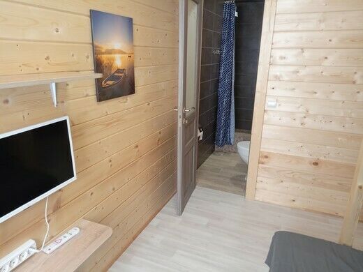В каждом домике: телевизор, туалет, душ, кухня с посудой и холодильником, постельное бельё и полотенца включены в стоимость проживания. Есть общая мангальная зона (пользование бесплатное).