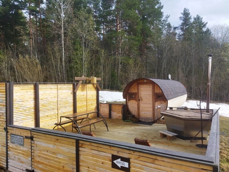 Инфраструктура: обливное ведроМинимальное время аренды: 2 часаВремя работы: до 21.00Доступы дровяная баня и банный чан-4000р/2 час/4 чел.