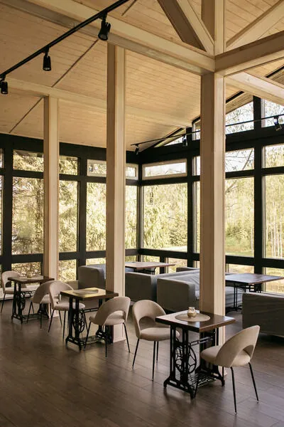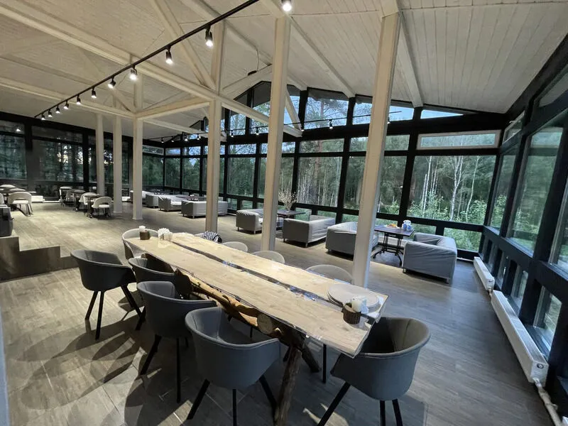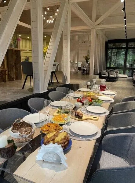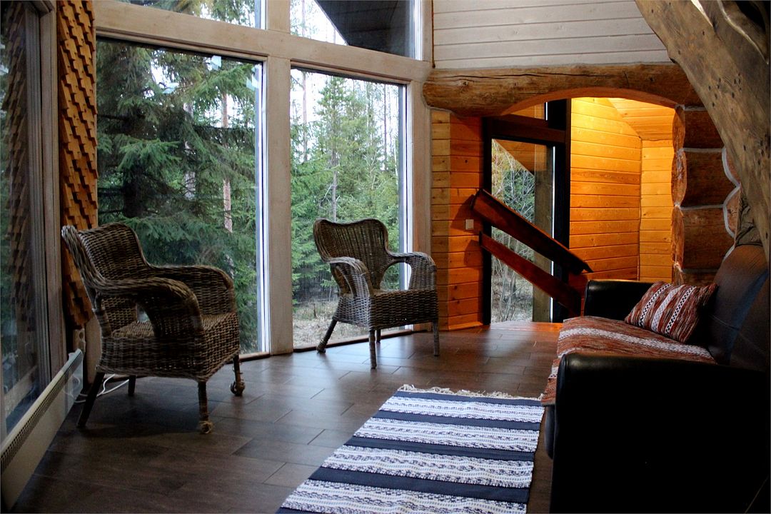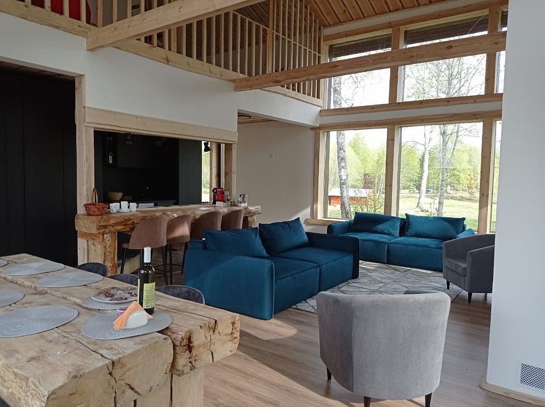 Природные фактуры, экологичные материалы и вид на еловый лес и наше озеро создают в доме атмосферу спокойного и комфортного отдыха.