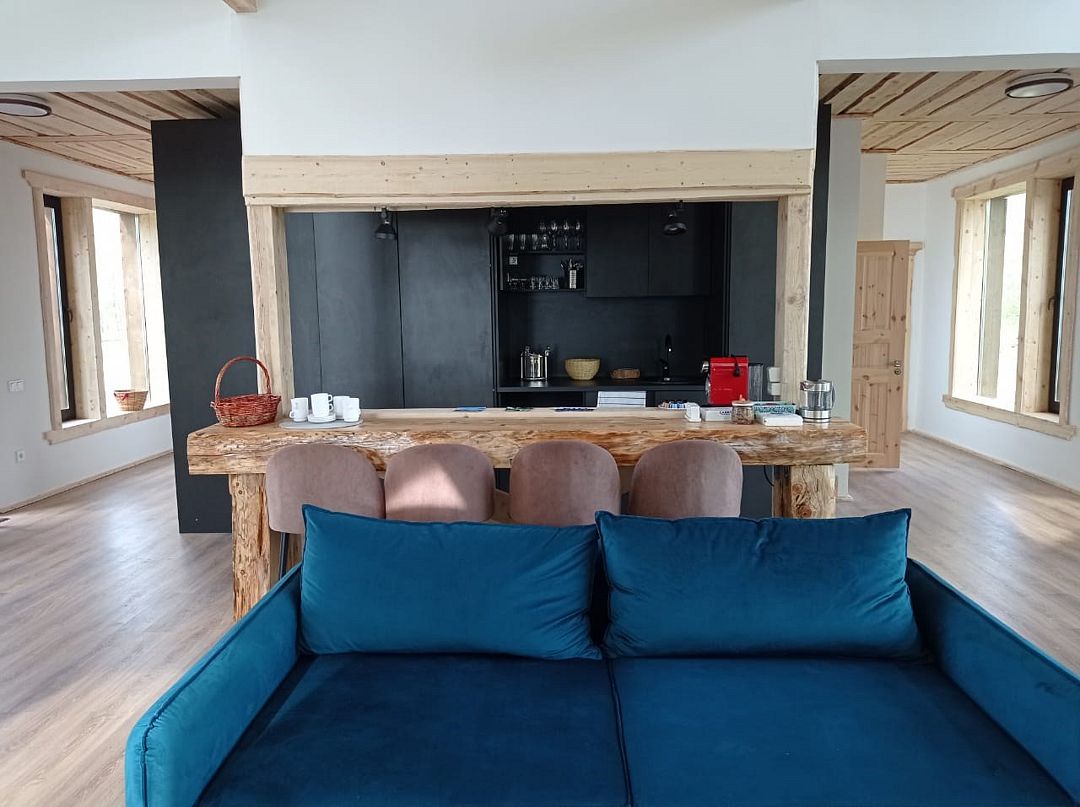 Общая площадь дома составляет более 250 м2 и включает четыре обособленные спальни, четыре душевые комнаты, несколько зон отдыха, кухонную зону, столовую совмещенную с гостиной, тепло в которой будет дарит камин. Все в доме создано для максимального комфорта большой семьи или дружной компании.