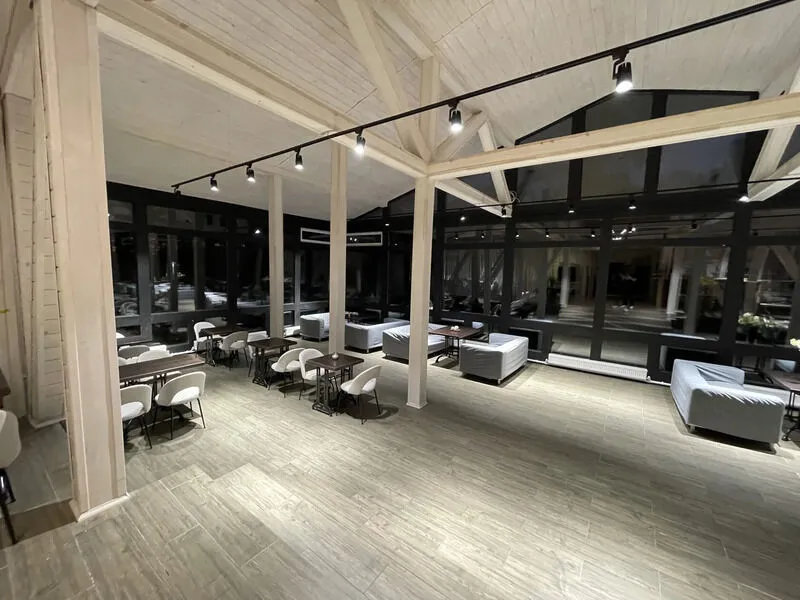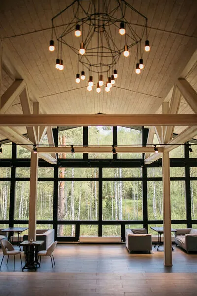 Большой коттедж с панорамными окнами подойдёт для идеального семейного отдыха.