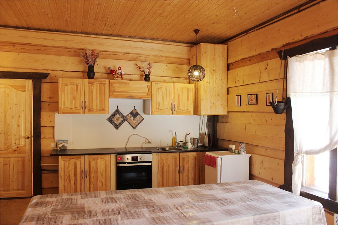 В этом уютном домике есть всё необходимое для приготовления пищи и комфортного размещения.