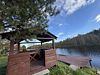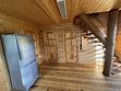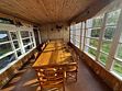 Домик из сруба на берегу реки с пирсом и верандой