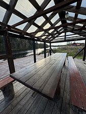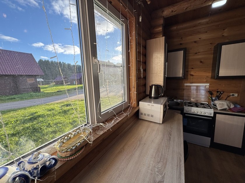 ДостоинстваЧудесное место, находится прямо у реки, можно погулять по причалу, имеется беседка для сбора больших компаний, протсорная и чистая баня с сауной. Персонал хорошо убирается, ответственно относится к своей работе и за всем следит. Домик на четырех очень просторный, есть дыш, мыло, полотенца, посуда и туалетная бумага.