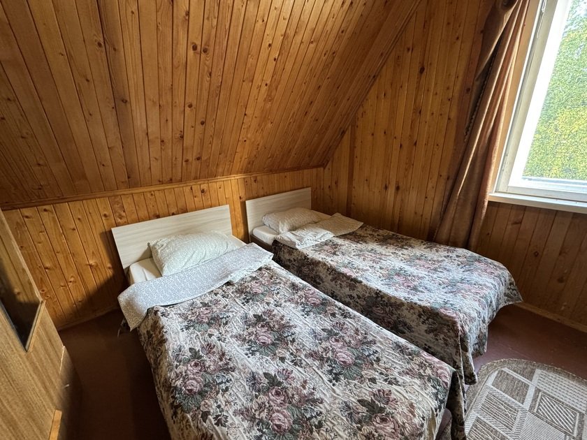 ДостоинстваБаза отдыха хорошо расположена, домик очень уютный, внутри есть все, что необходимо для комфортного отдыха, персонал очень гостеприимный и доброжелательный, всегда интересуется проблемами гостей и готов помочь. Кровать очень мягкая, когда спишь на ней, даже проваливаешься.