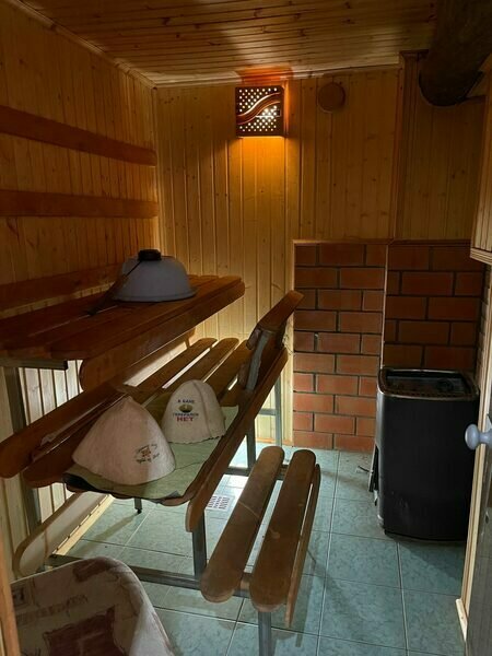 Сауна находится в доме, первый раз предоставляется бесплатно, последующие разы — 1000 ₽.