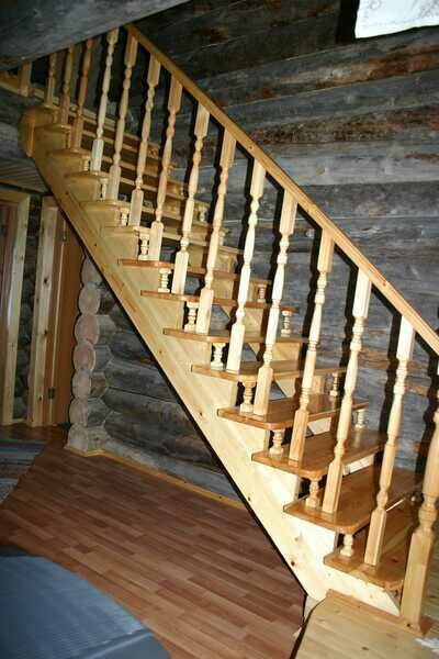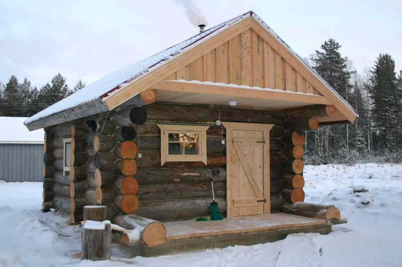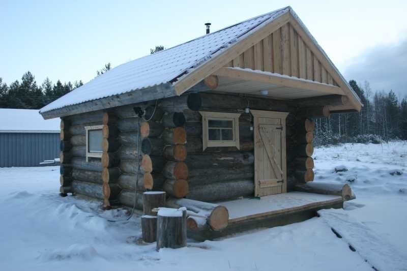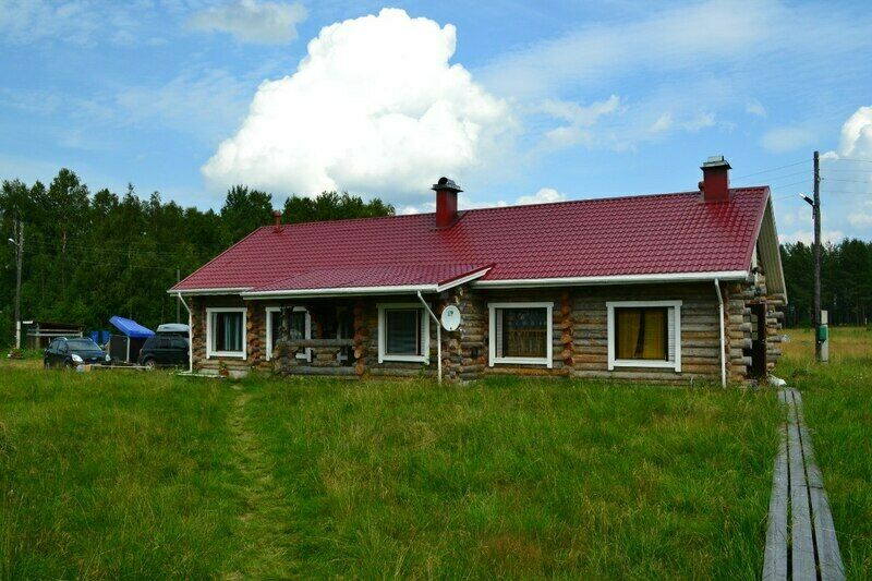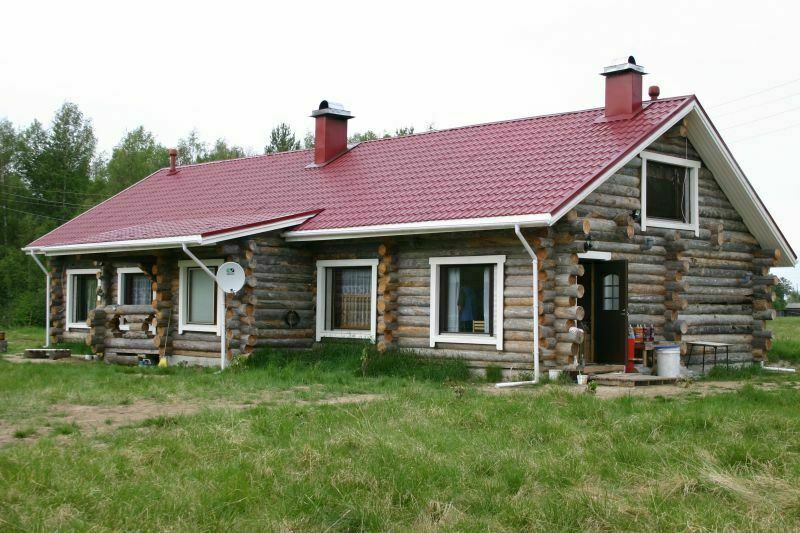 Дом построен из сухостойной сосны, в 25 метрах от воды. Дом одноэтажный с мансардой, имеет два входа.