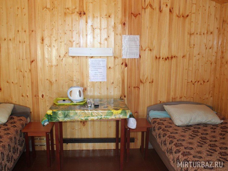 2-местный номер: одна комната, постельное белье, полотенца, ТВ, холодильник, чайник, чайная посуда, 2 кровати, стол, табуретки, обогреватель.4-местный номер: веранда, одна комната, стол, табуретки, постельное белье, полотенца, ТВ, холодильник, чайник чайная посуда, 4 кровати, обогреватель.