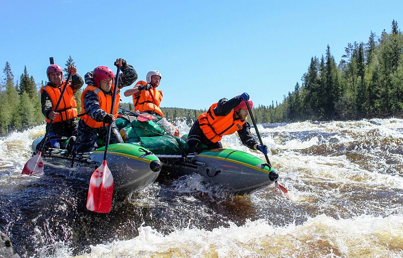 - на близлежащих реках, с сочетанием рыбалки и любования красивейшими порогами и водопадами;