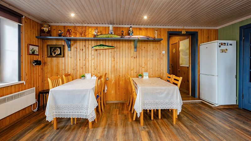 Путешествие по работеОтличное место для настоящего отдыха большой компанией!Пишу как гид. Отдыхали с туристами со 2 по 5 января этого года, нас было 16 человек. Отлично все поместились в большой дом, весело провели новый год. Очень колоритное место, сразу видно, хозяин - рыбак. В мелких деталях дома это чувствуется. А чего стоит один мумифицированный окунь?! Тихо, спокойно, уютно. Валентин - супер хозяин. Прогулялись до острова по льду, попарились в бане, наелись рыбы, приходил Дед Мороз (супруг повара), на завтрак предлагалось 5 разных каш, атмосфера домашняя. Катались на снегоходах, жарили шашлык и рыбу на мангале в отличной беседке, Валентин посоветовал отличного гида Павла из Питкяранты, который провел экскурсию по местности, отдыхом довольны.