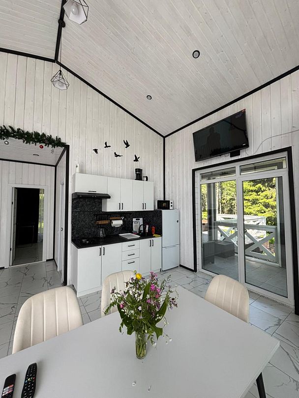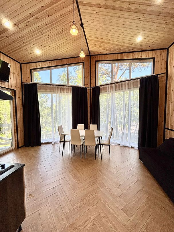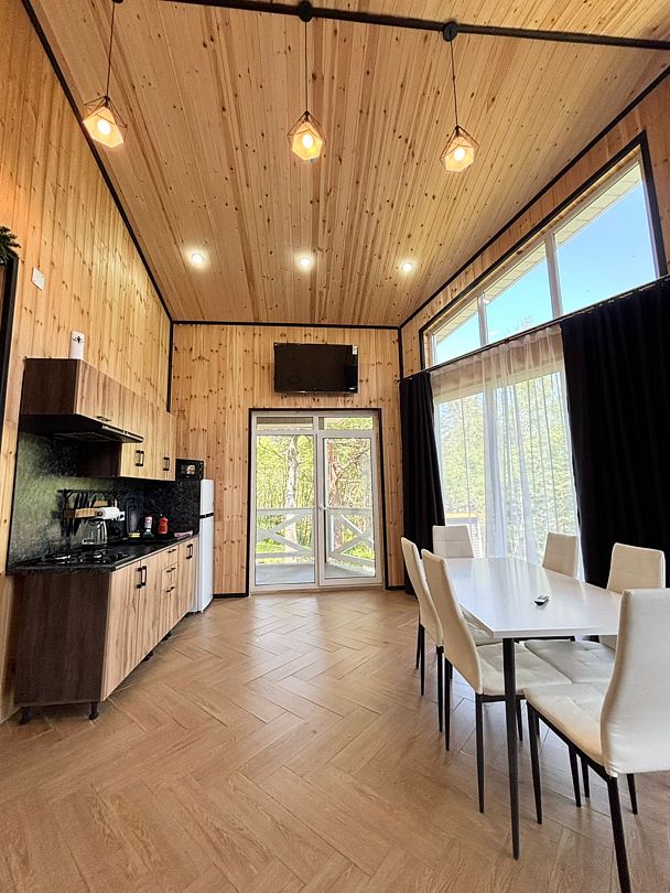 В домиках Вы найдёте все необходимые для проживания удобства, в том числе сауну. За дополнительную плату можно расслабиться в банном чане на террасе.