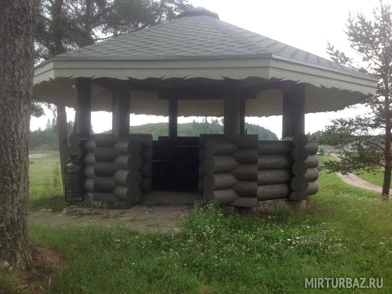 Проведение мероприятий в летний период прямо у береговой линии. Вид на Ладогу — лучшая декорация. Также на территории красивая беседка, рядом мангал, коптильня и все необходимое для приготовления пищи на огне.