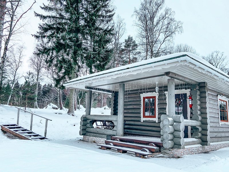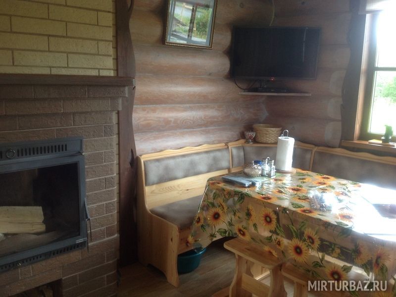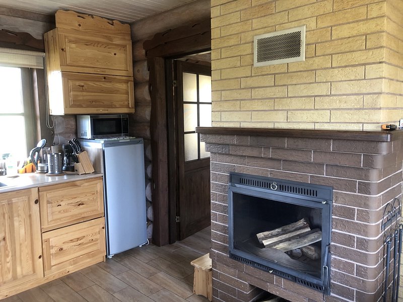Домик уютный и комфортный. Все новое. Очень красивая подсветка крыши дома, по всему периметру. Часть площади занимает веранда под крышей. Внутри гостиная-кухня с телевизором (HD) со спальным местом на 2-х человек, камин и спальная комната с двумя кроватями на 4-х человек. Везде теплые полы.