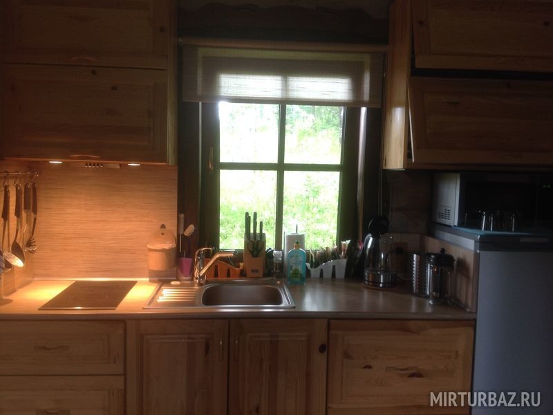 В доме: гостиная-кухня с телевизором (HD) со спальным местом на 2-х человек, камин и спальная комната с двумя кроватями на 4-х человек. Везде теплые полы.