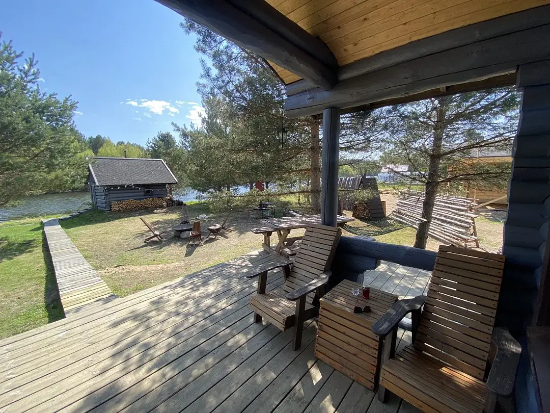 Гости могут насладиться просторными песчаными берегами и прозрачными водами реки, а вокруг простирается густой хвойный лес, полный грибов и ягод. Вечера у камина или на костровой зоне с мангалом обещают тепло и уют, позволяя слушать треск дров и любоваться звездным небом. Свежий воздух и живописные пейзажи заряжают энергией и вдохновением.
