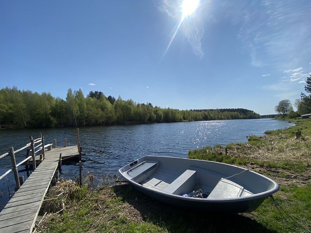 Для гостей — вид на реку и лес, собственный пирс, лодка, большая двуспальная кровать, премиальное постельное белье из вареного хлопка Araya Home, меню подушек, раскладной диван.