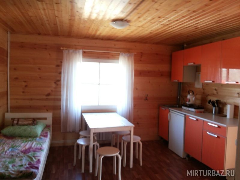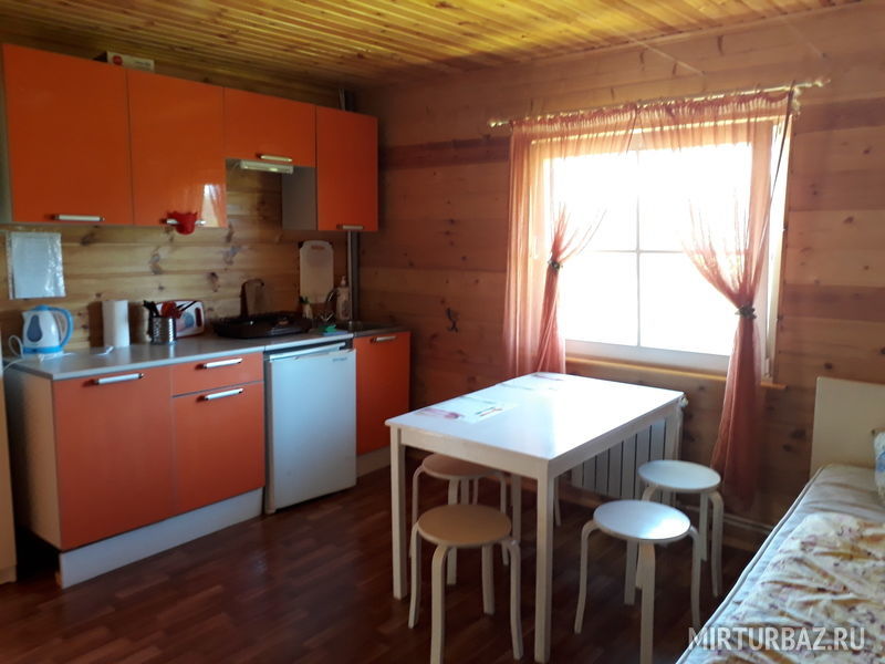 Из крана течет родниковая вода. Кухня оснащена всем необходимым: посудой, холодильником, чайником, плитой. Есть душ на два номера.