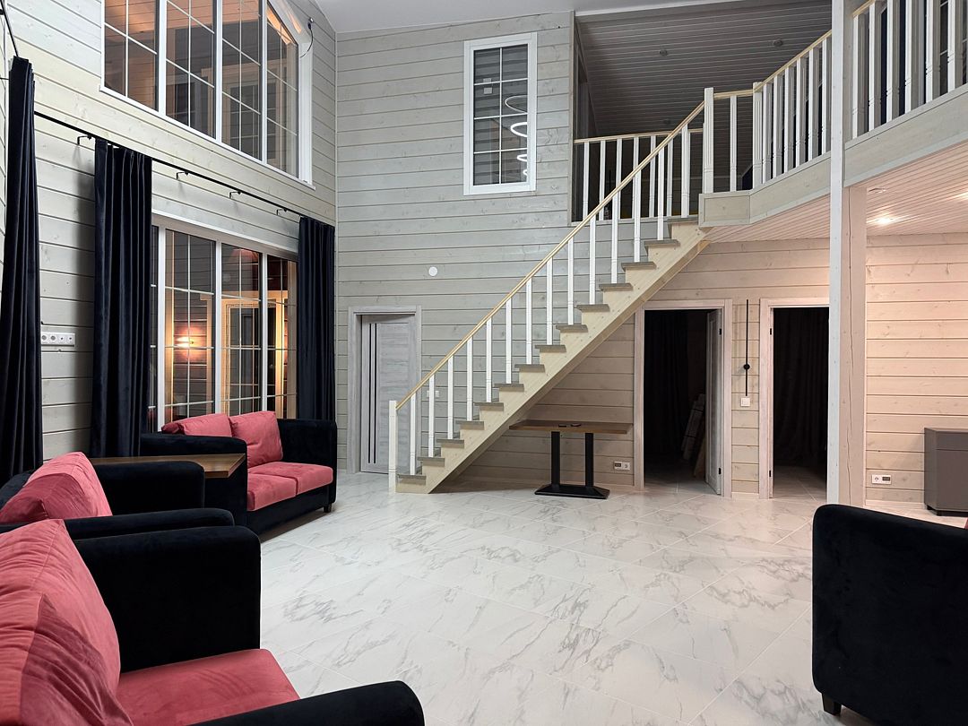 Новый дом запущен в декабре 2024 года. В вашем распоряжении будут 6 отдельных спальных комнат с большими кроватями — каждому хватит пространства для уединения и отдыха, а также сауна и бассейн для полного релакса после насыщенного дня на свежем воздухе.
