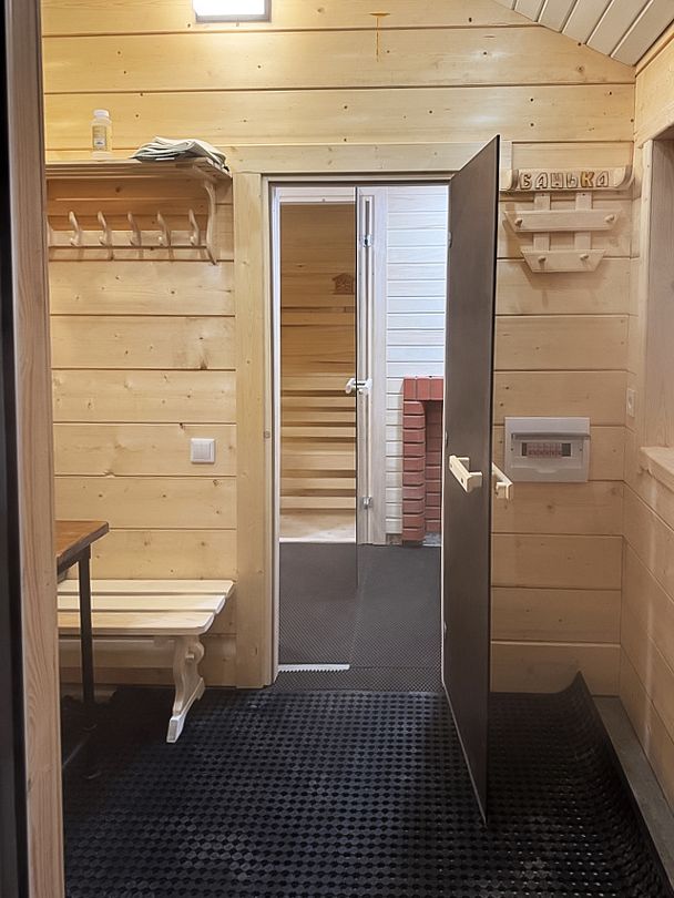 Уютная баня, рассчитанная на четверых, станет вашим идеальным местом для отдыха после насыщенного дня. Здесь вы сможете насладиться приятным времяпровождением в комнате отдыха или у мангала, попариться в баньке, а затем освежиться в бассейне.