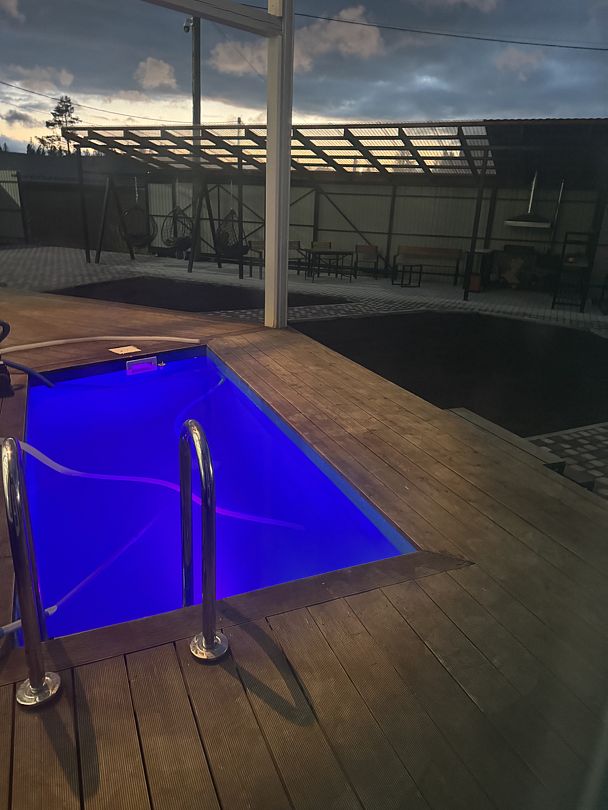 Пользование бассейном включено в стоимость аренды бани, создавая особую атмосферу отдыха на природе.
