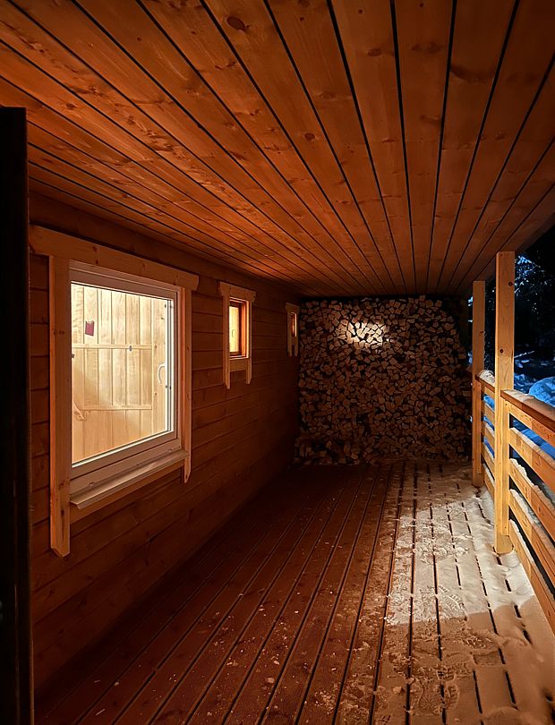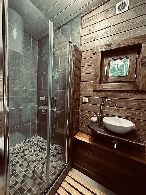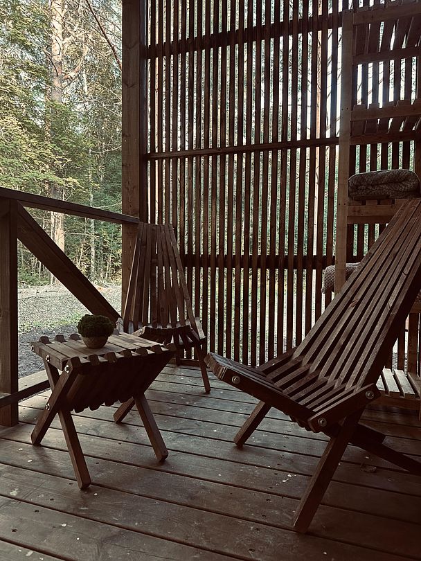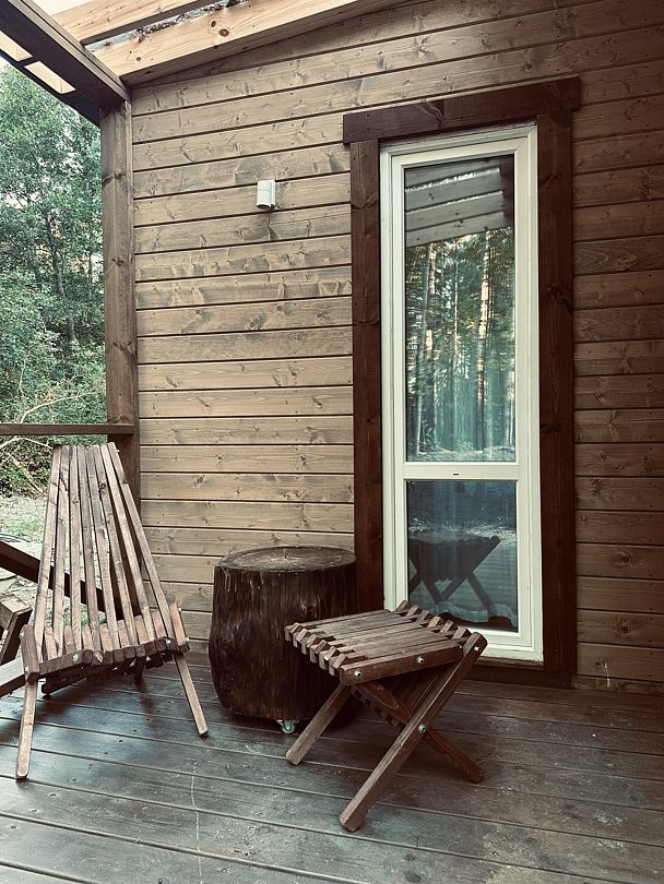 На террасе вы сможете проводить время в любую погоду: пить чай, читать книгу, греться на солнышке или наблюдать за дождем. Кроме того, вы можете насладиться расслабляющими процедурами в классической бане на дровах, что сделает ваш отдых еще более приятным.