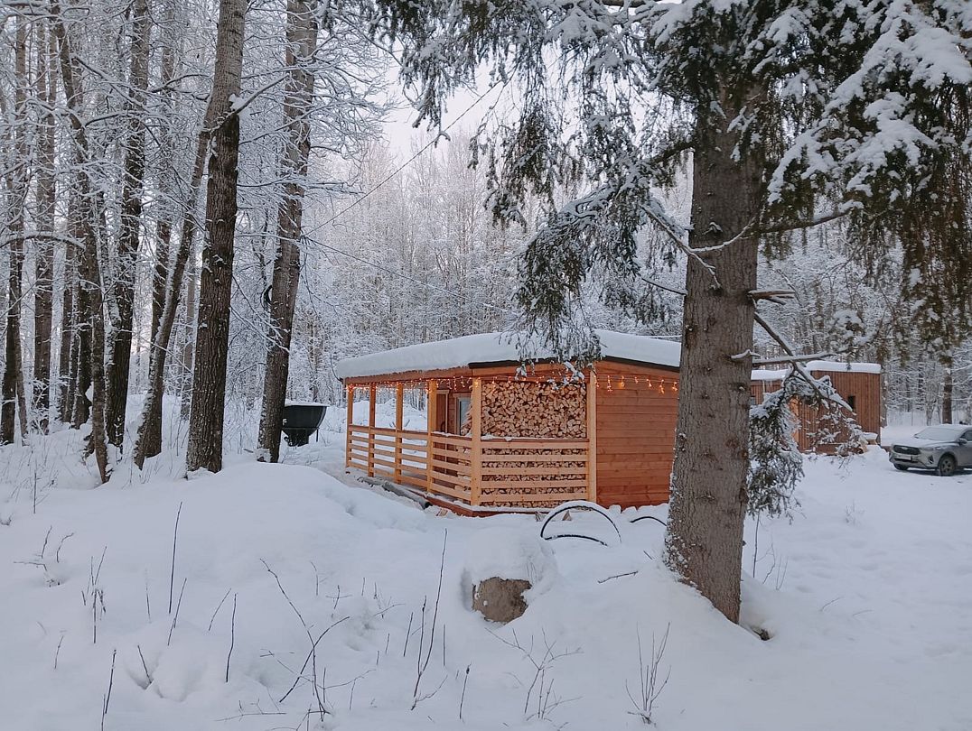 К Вашим услугам: терраса 20 м² с уличной мебелью, спальня с большой двуспальной кроватью 160х200 и большими окнами с видом на Карельский лес, комод для личных вещей, предоставляем постельное белье и полотенца, кухня-гостиная с раскладным диваном со спальным местом 160х200, смарт-тв, wi-fi, кухня оснащена холодильником, микроволновой печью, индукционной плитой на 2 конфорки, чайником, а также уличные пледы, мангал, шампура (уголь не входит в стоимость).
