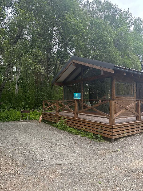 Терраса подсвечена, оборудованно место для шашлыков у каждого домикаНедостаткиНе указаны