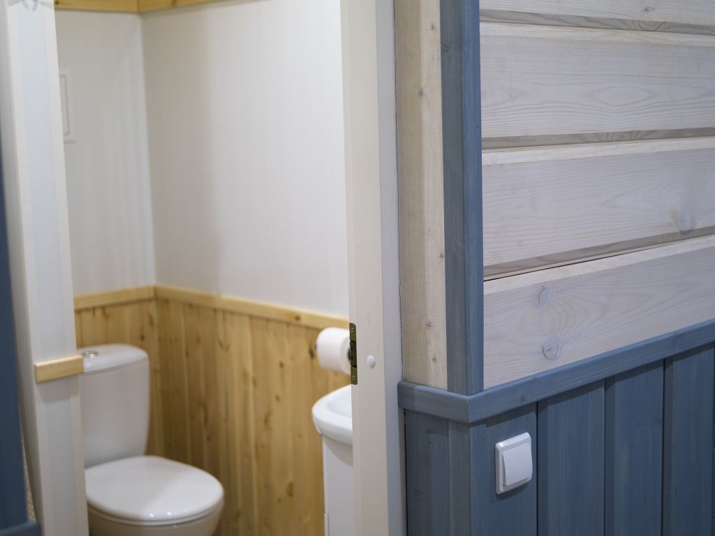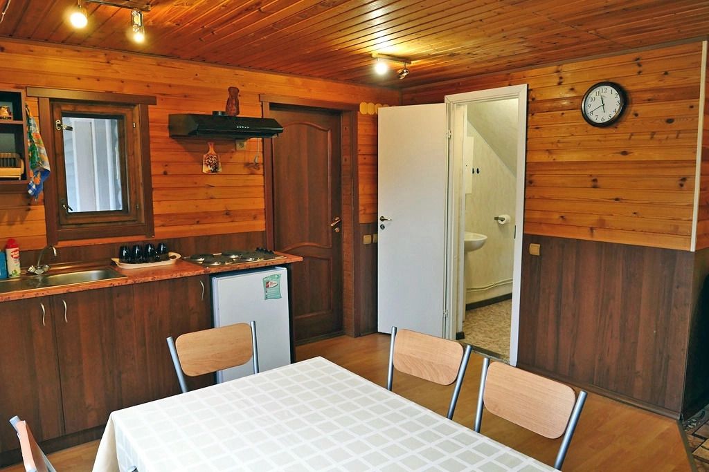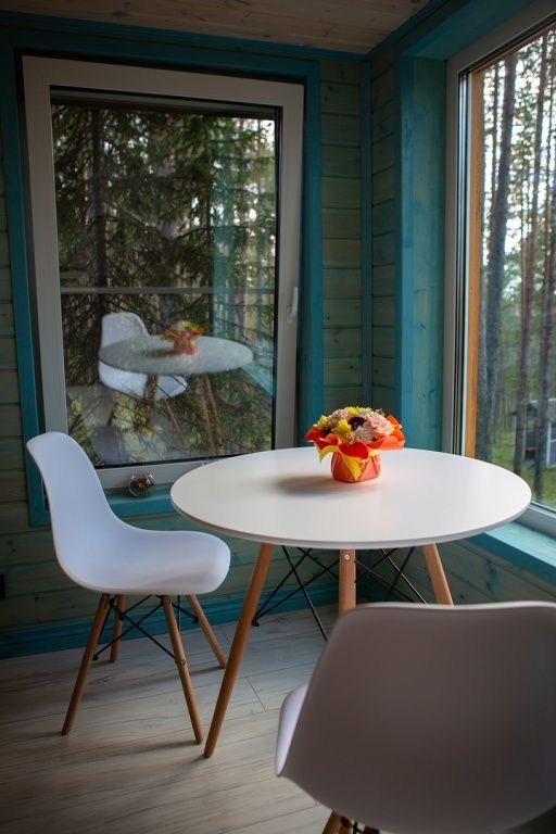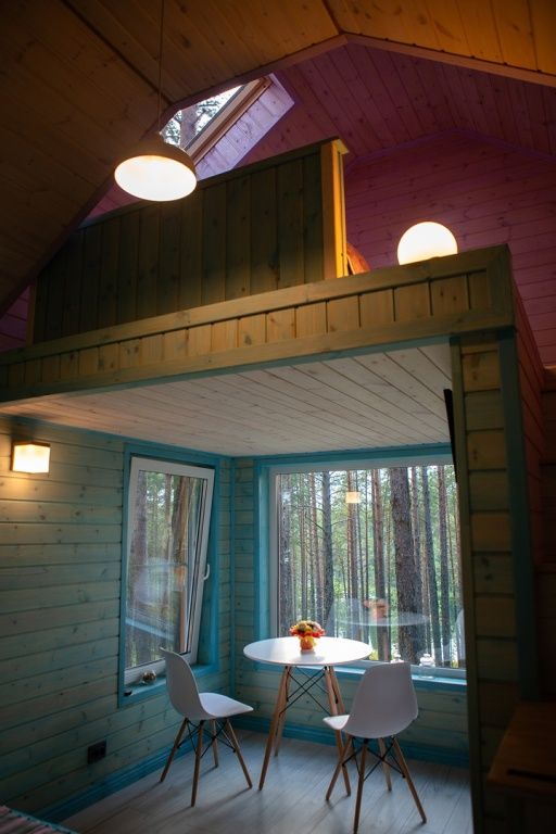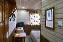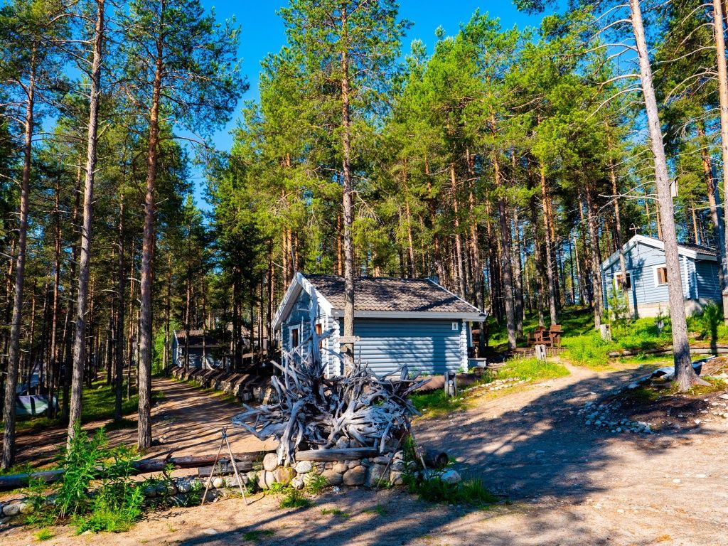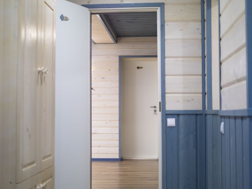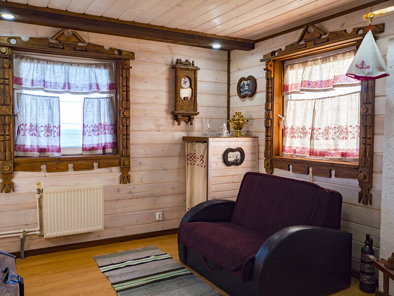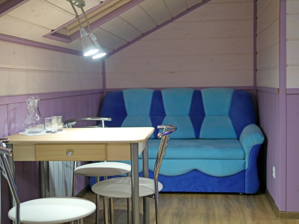 Отделка комнат: стены рау-хауз (имитация бруса) из карельской сосны, покрытие пола — ковролин, паровое отопление, окна — металлопласт. Шторы blackout отличная защита от света в пору «белых ночей». Летом выдается фумигатор (защита от комаров).