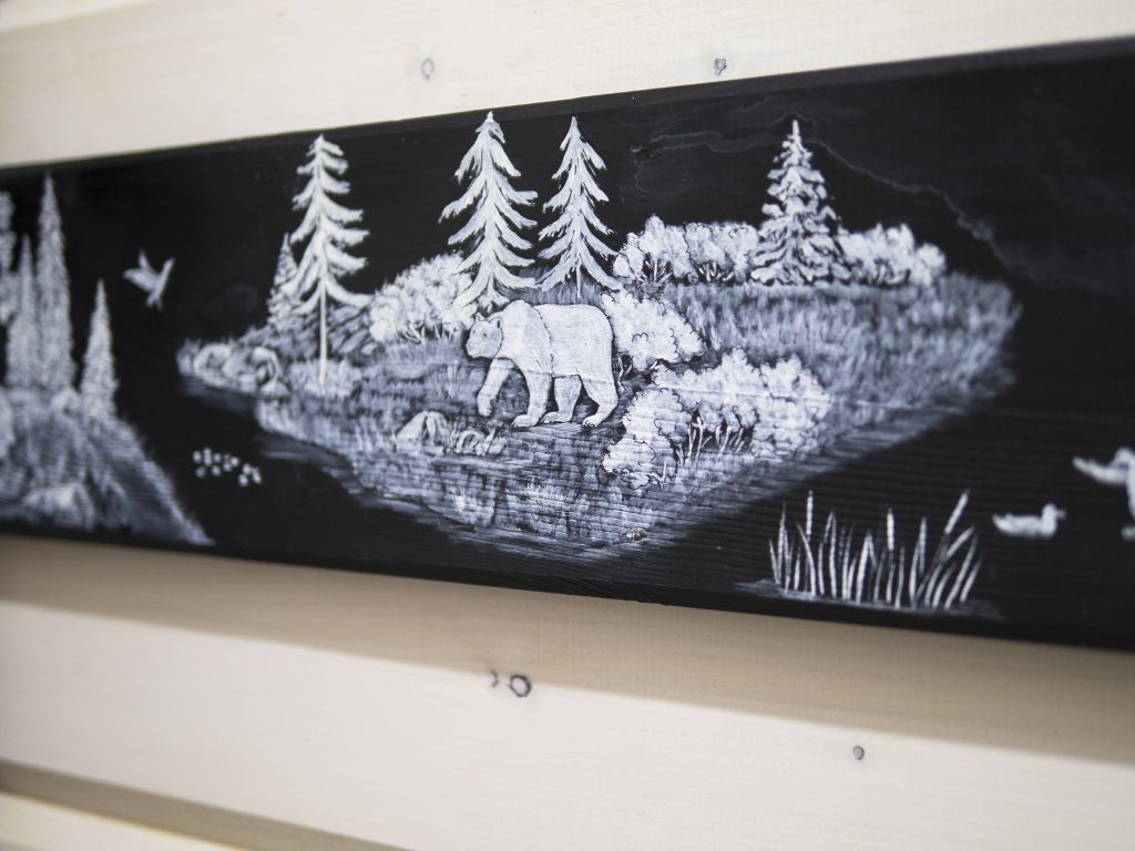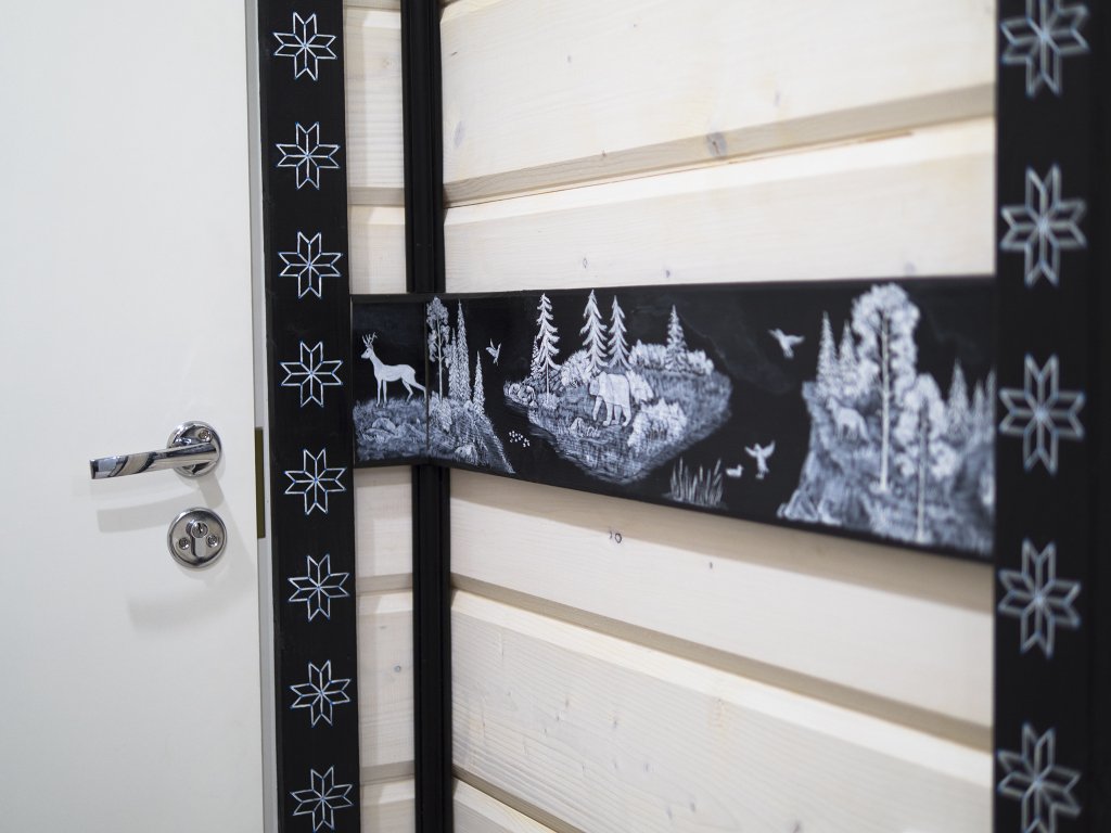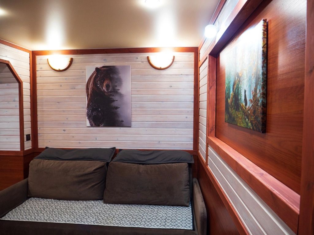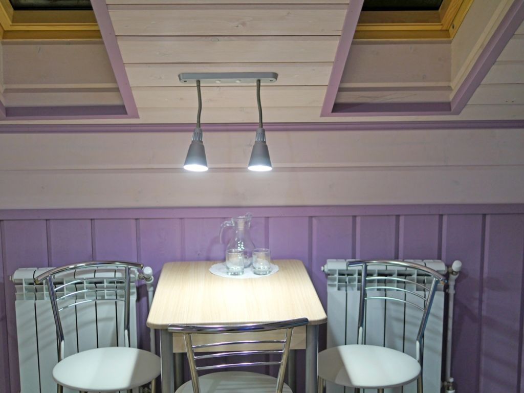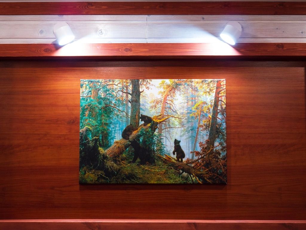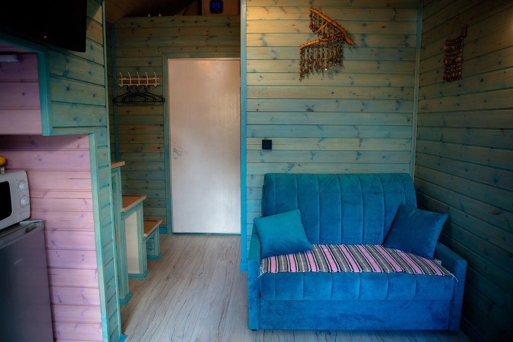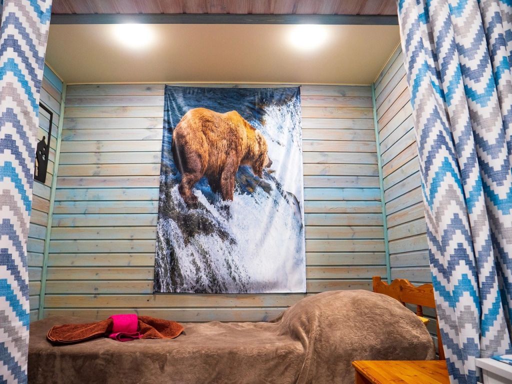 Отделка комнат: стены рау-хауз (имитация бруса) из карельской сосны, покрытие пола — ковролин, паровое отопление, окна — металлопласт. Шторы blackout отличная защита от света в пору «белых ночей». Летом выдается фумигатор (защита от комаров).
