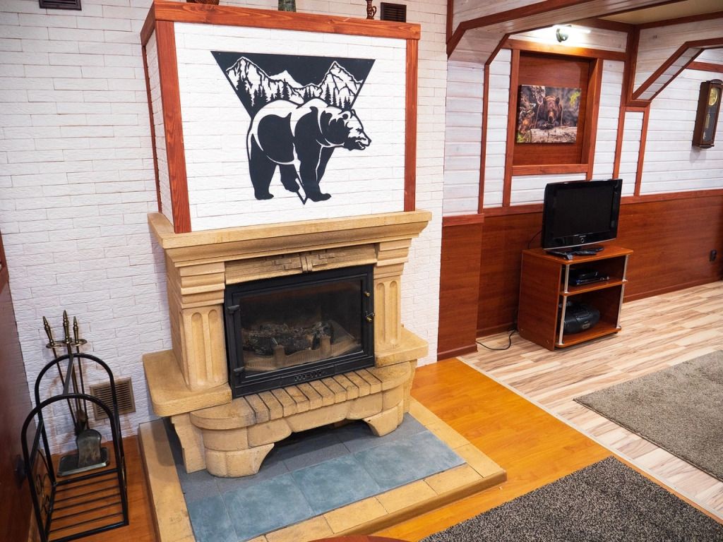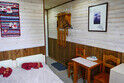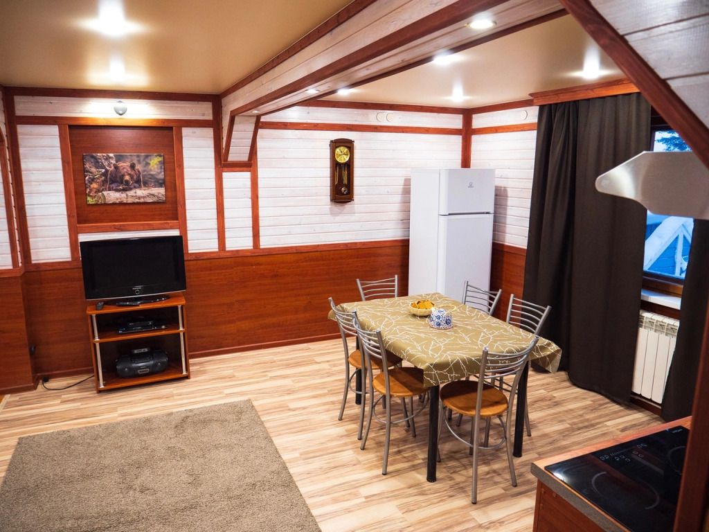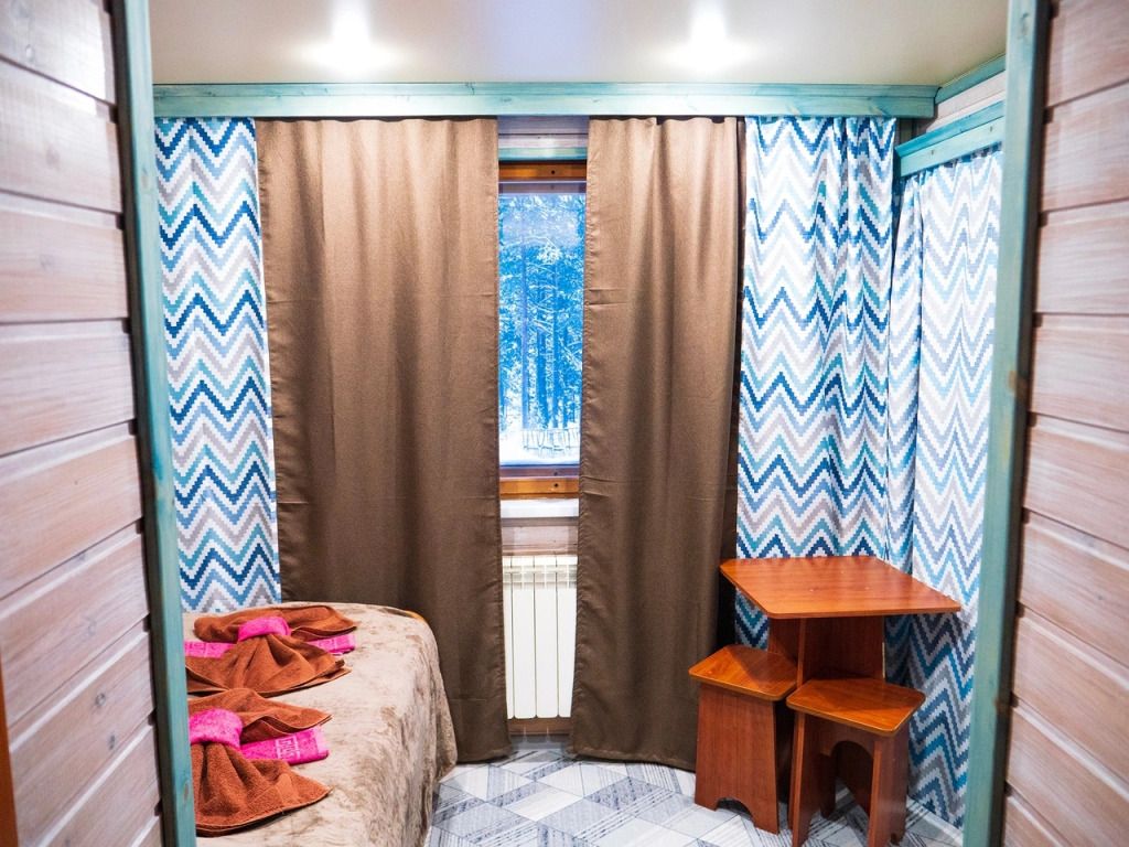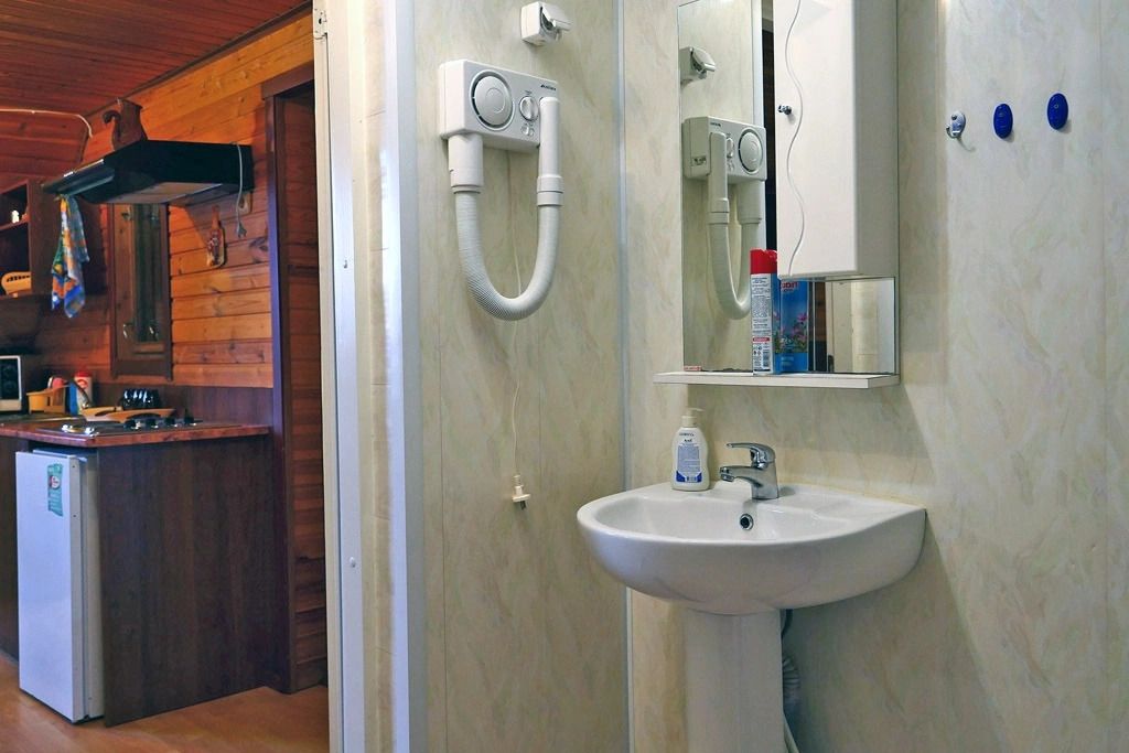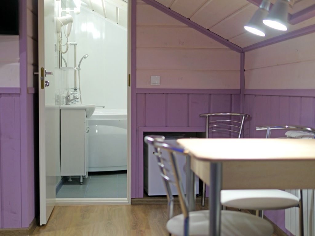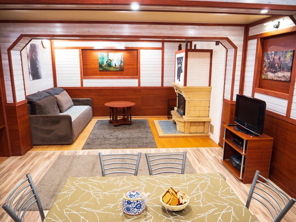 В номере: спальная мебель из массива карельской сосны (ручная работа), прикроватные тумбочки, вешалка для одежды, стол и стулья, ТВ, зеркало, графин, стаканы, покрытие пола ковролин. В летнее время выдается фумигатор.