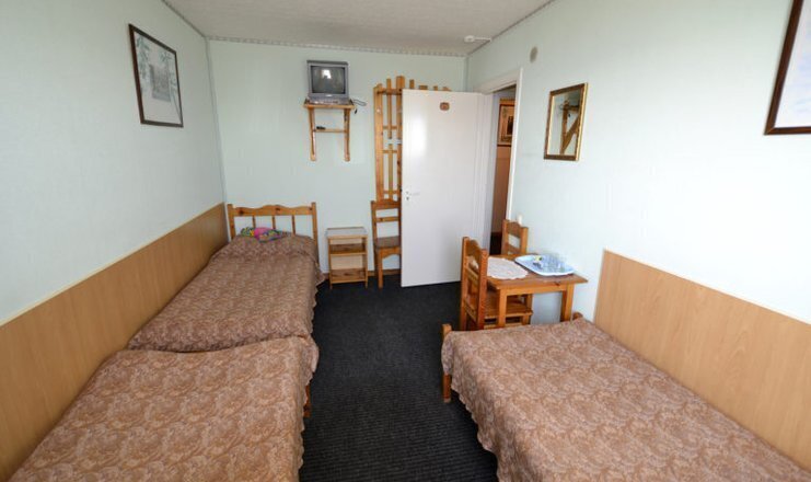 В номере: ТВ, Wi-Fi, три кровати, кабельное телевидение. Удобства (душ, туалет) на 2 номера.