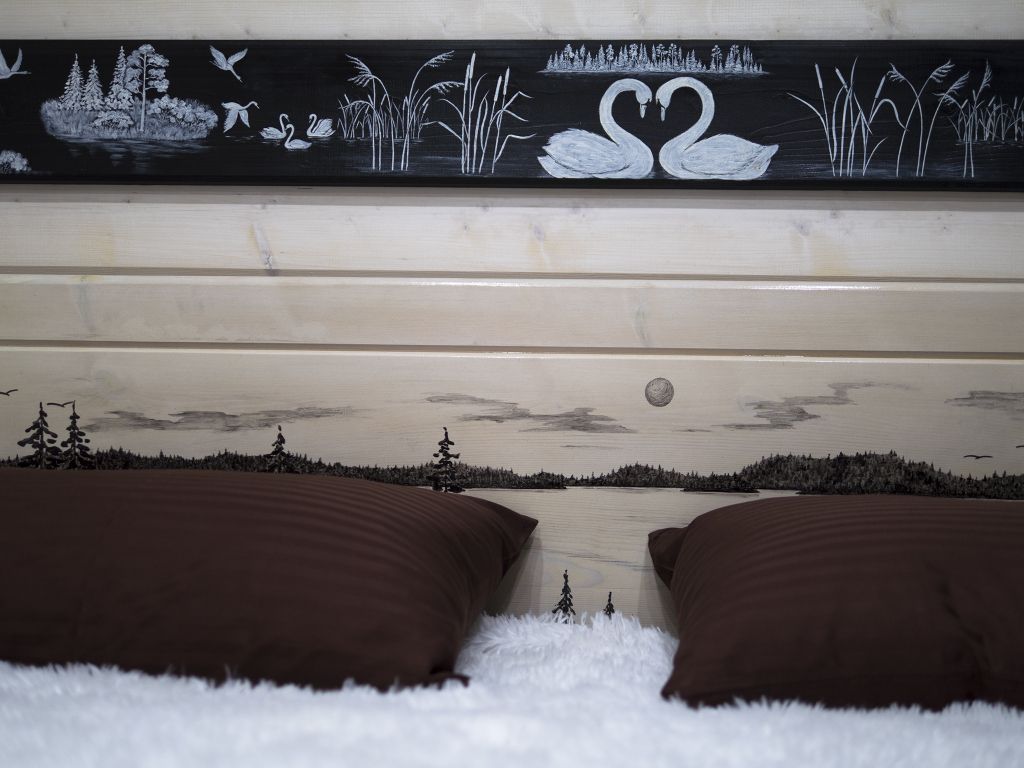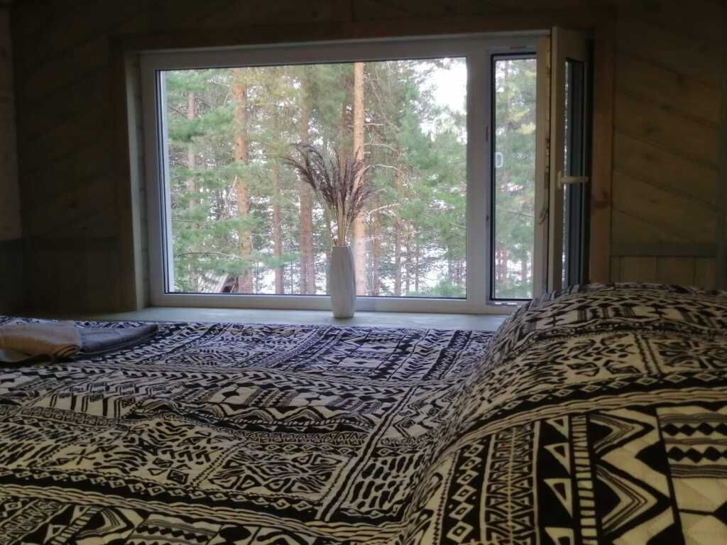 Двухместный номер Стандарт (коттедж Полярная Звезда) с видом на озеро двуспальная кровать