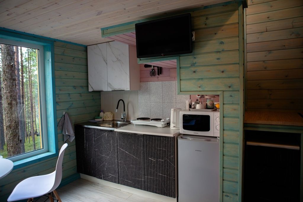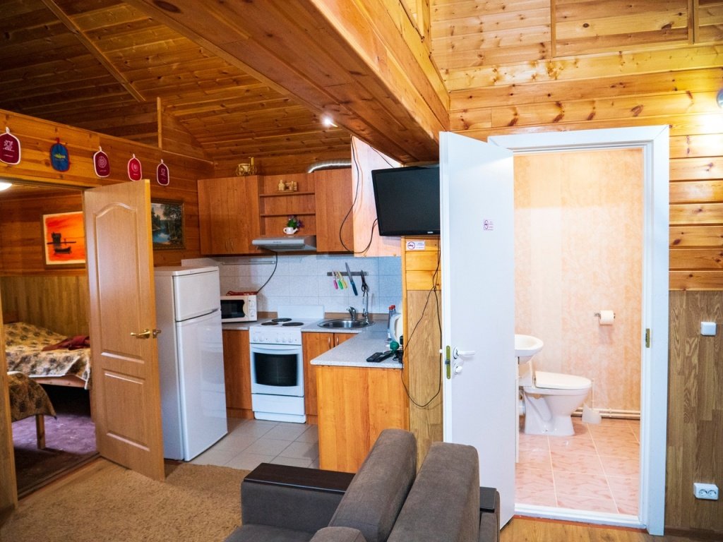 В номере: ЖК-ТВ, Wi-Fi, двуспальная кровать, раздвижной диван, холодильник, душ, фен, туалет, кабельное телевидение, вид на озеро Куйто и остров Ухтинский.