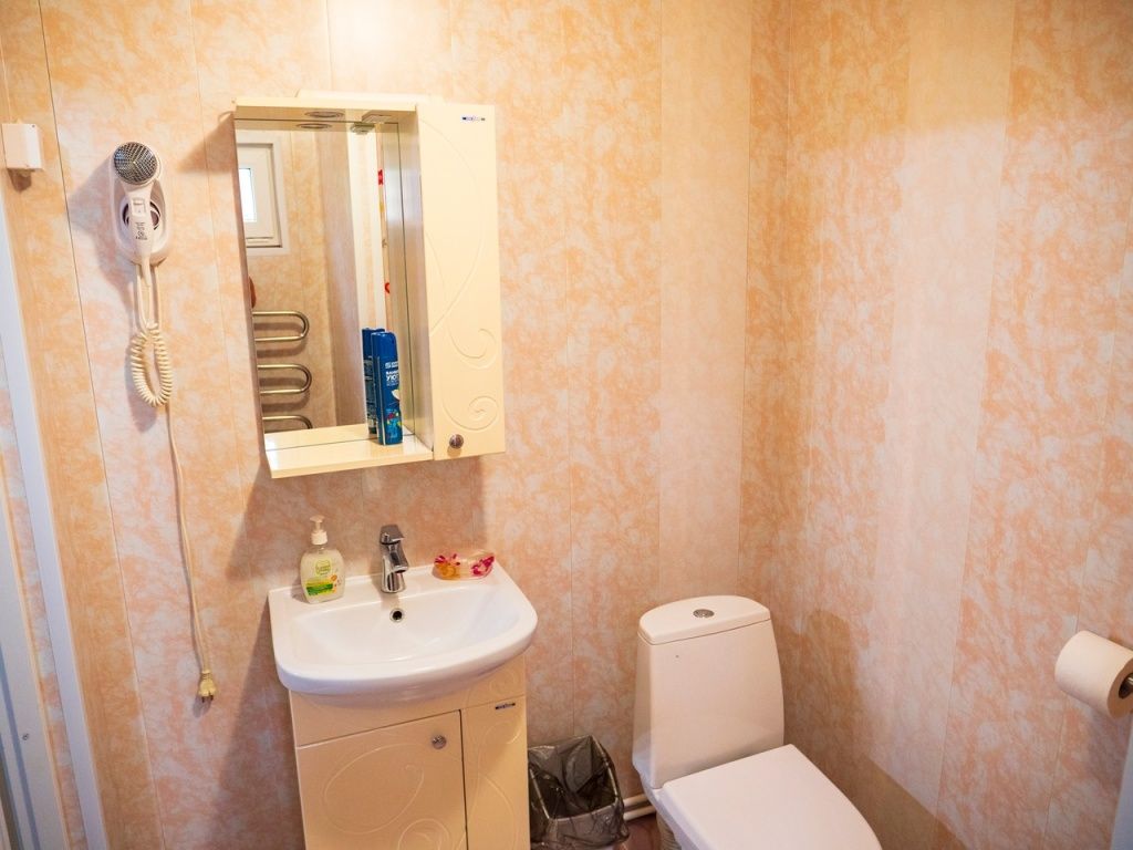 В номере: ТВ, Wi-Fi, две кровати, стол, стулья, кабельное телевидение. Удобства (душ, туалет) на 2 номера.