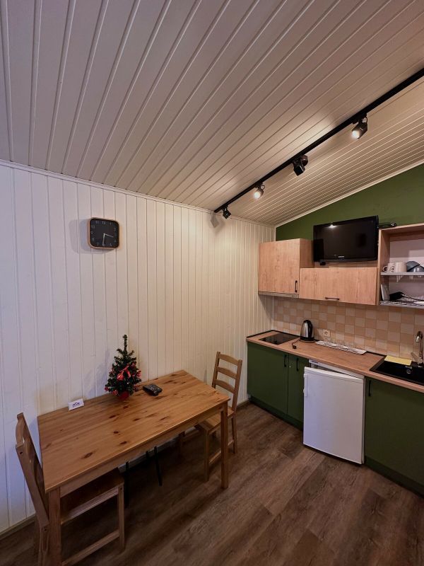 Уютные домики и номера в норвежском стиле, территория небольшая и чувствуешь себя уединенно. Есть мангал, дрова. В домике чисто и уютно.