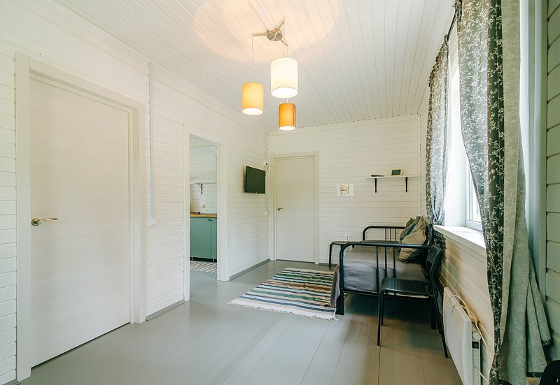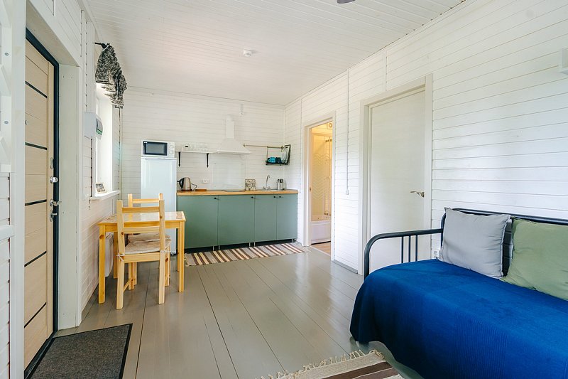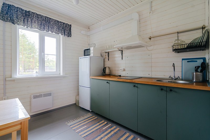 В гостевых домиках есть все необходимое для полноценного отдыха, а ритм его вы сможете выбрать сами - от неспешного созерцания до различных активностей: рыбалка, походы, баня, сауна, велосипедные прогулки, сапсерфинг, прогулка к тихому озеру с прозрачной водой и песчаным пляжем. Дом площадью 60м2, рассчитан на 5 (+1) спальных мест, большая кухня-гостиная, санузел, зона барбекю