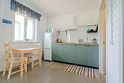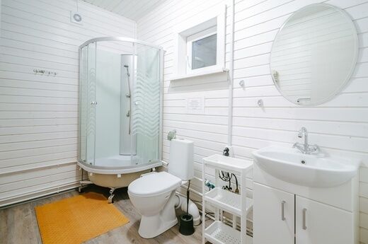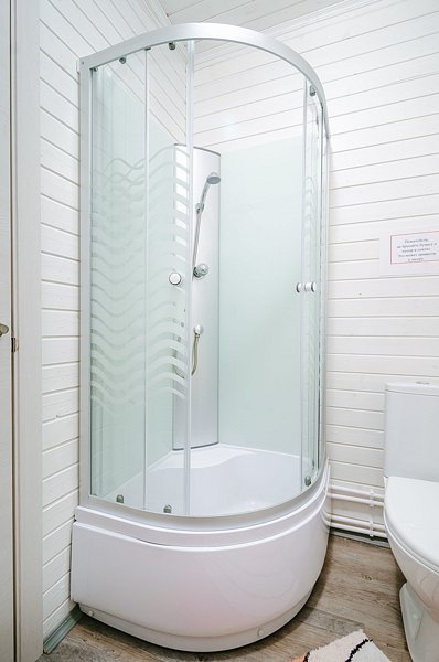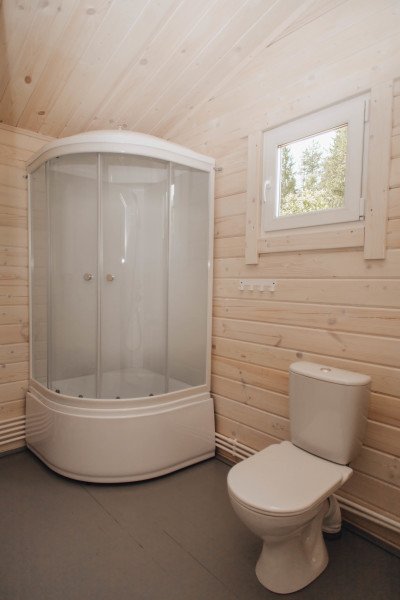 Дом 5 имеет площадь 60м2, большую кухню-гостиную, большой стол и стулья, две отдельные спальни по 3 спальных места в каждой, санузел, душевая кабина.