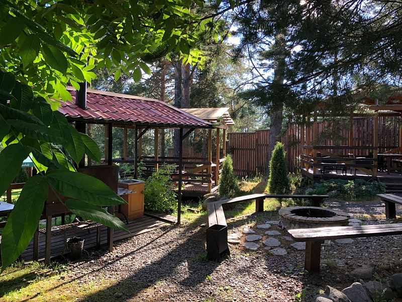 На территории имеется открытый бассейн, русская дровяная баня, охраняемая автостоянка, зона барбекю, кафе и детская площадка. Также к услугам гостей трансфер от ж/д вокзала, аэропорта или любого другого удобного для вас места. А для любителей активного отдыха проводятся увлекательные туры и экскурсии по выдающимся местам Карелии.