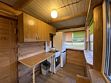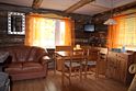 В коттедже есть гостиная, кухня, одна спальня, душ, туалет, банька дровяная.