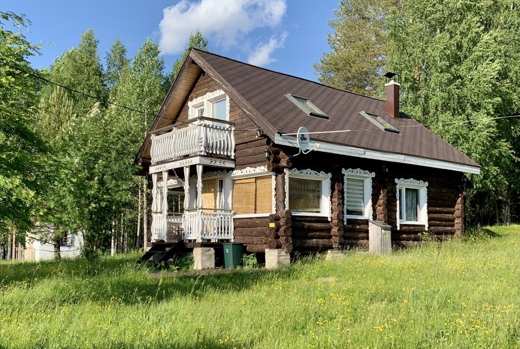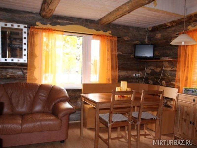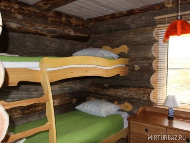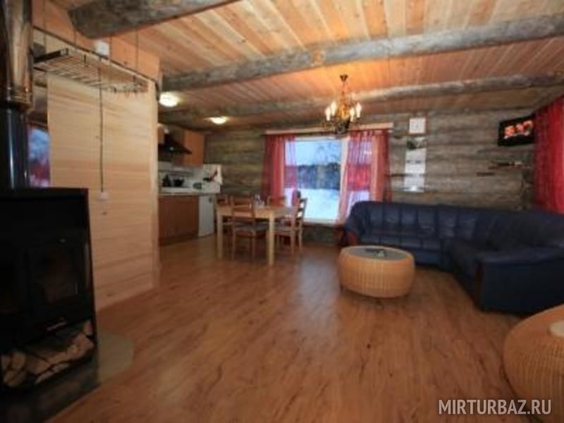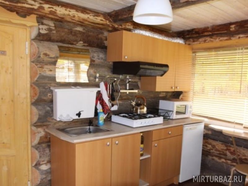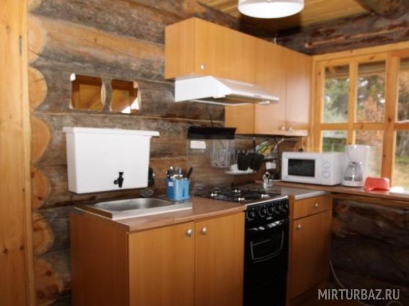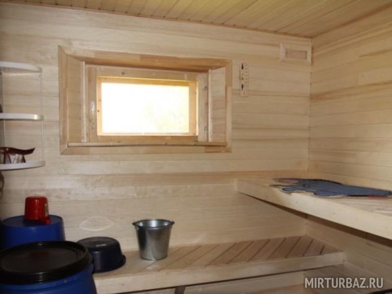 В коттедже есть гостиная, кухня, три спальни, банька дровяная, рядом с домом финский биотуалет.