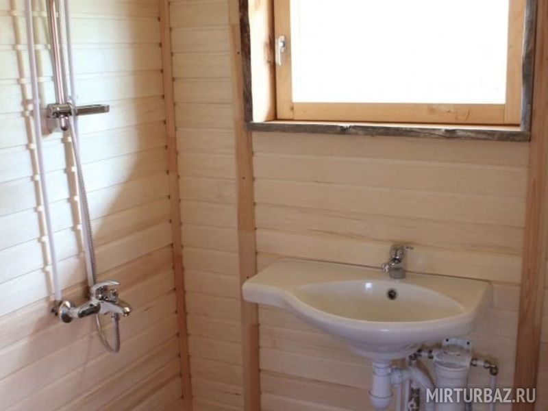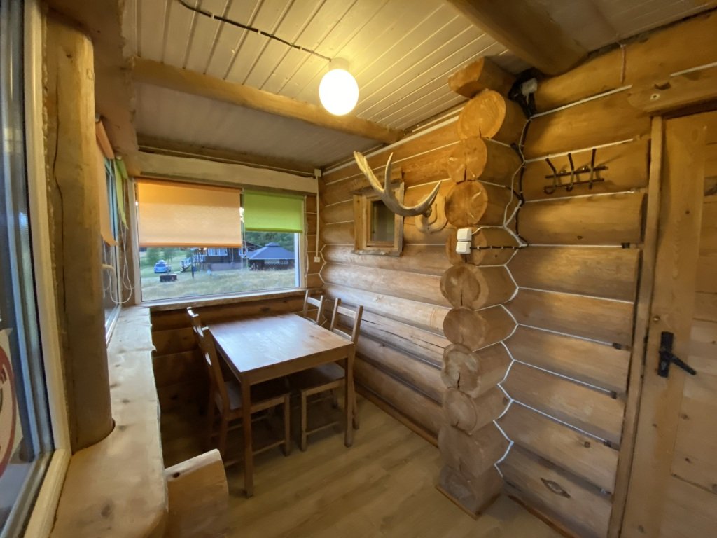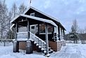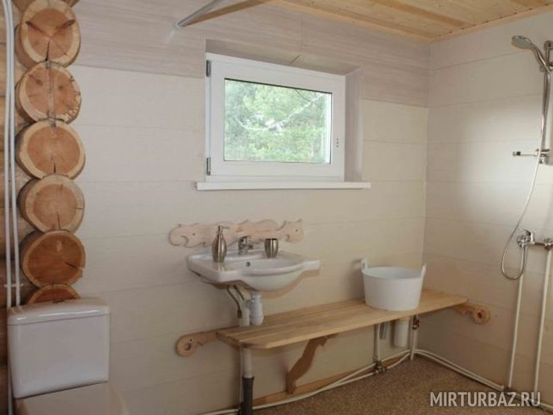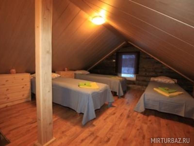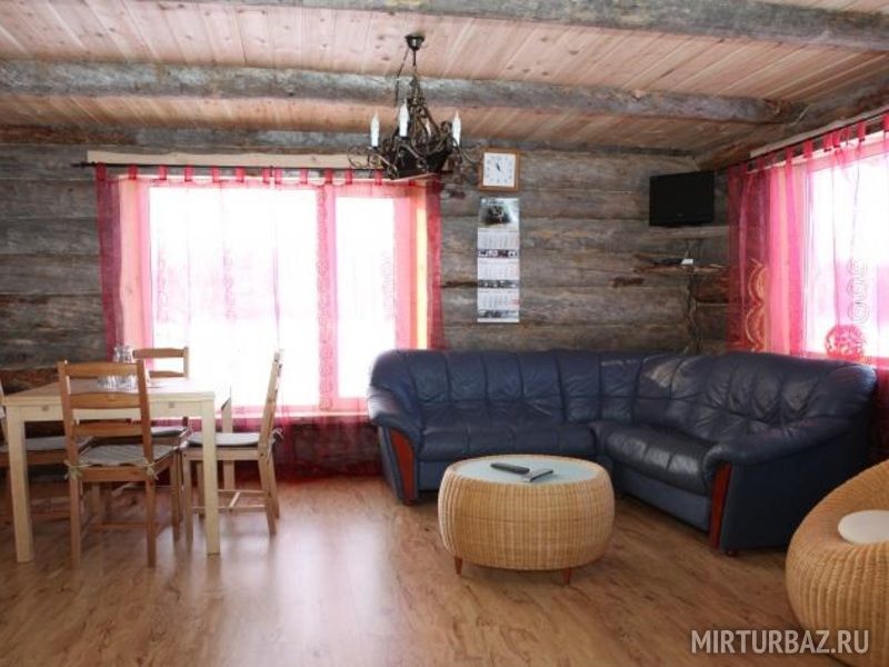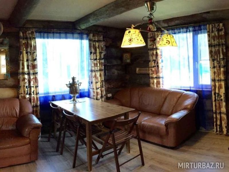 В коттедже есть гостиная, кухня, три спальни, банька дровяная, рядом с домом финский биотуалет.