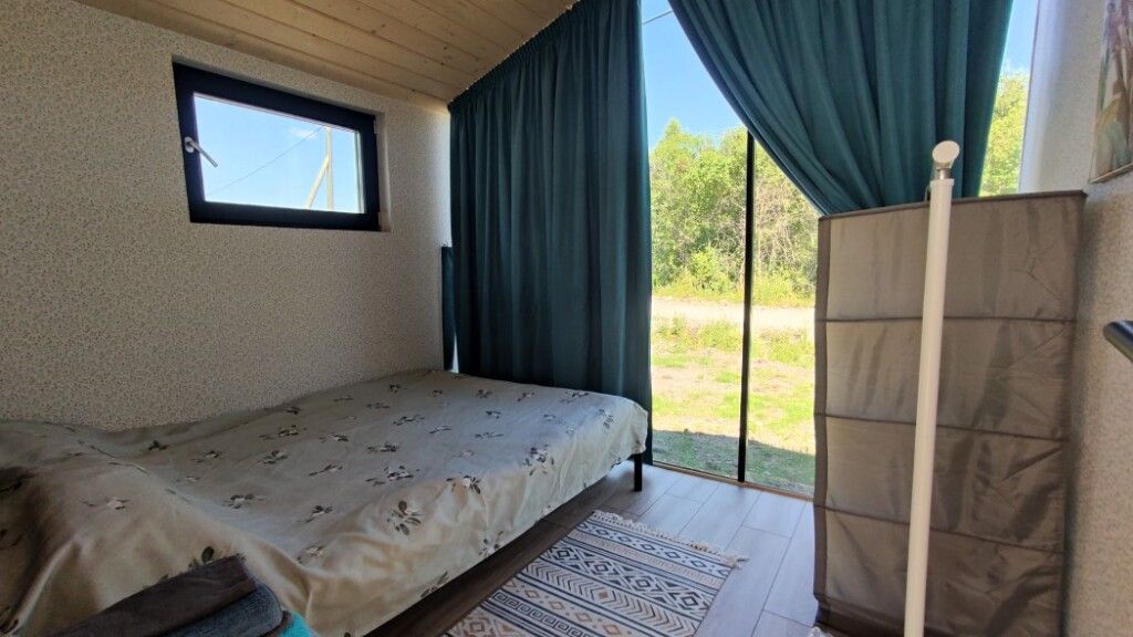 Уютный дом с одной спальней (двухспальная кровать), гостиной (раскладной диван) и террасой.