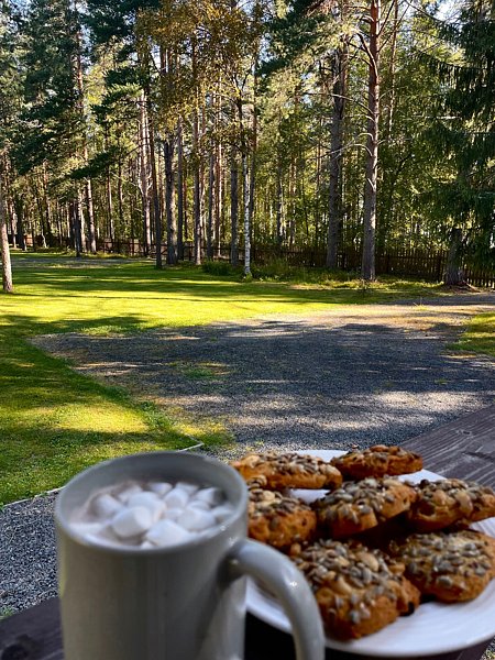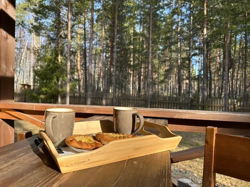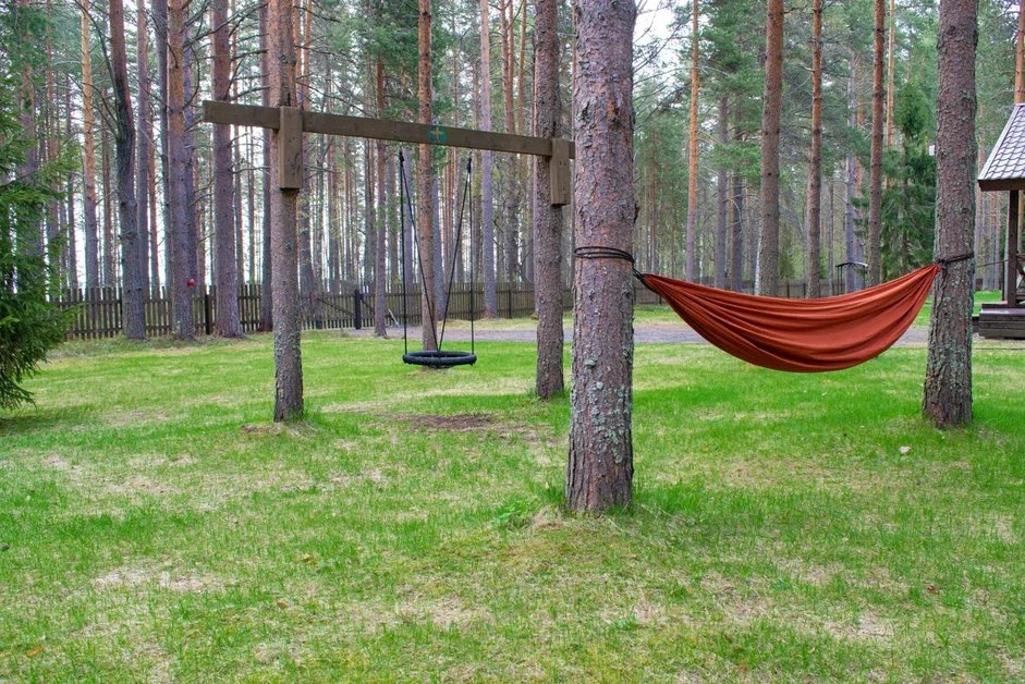 Комплекс окружён сосновым бором, создавая атмосферу гармонии и свежего карельского воздуха. Гостям предоставляются все условия для активного отдыха: ухоженные лесные тропинки для пеших прогулок, места для рыбалки, а также возможность покататься на лодках или SUP-бордах. Для детей предусмотрена детская площадка и возможность поиграть на поле с воротами в футбол.
