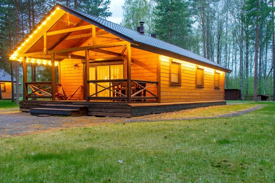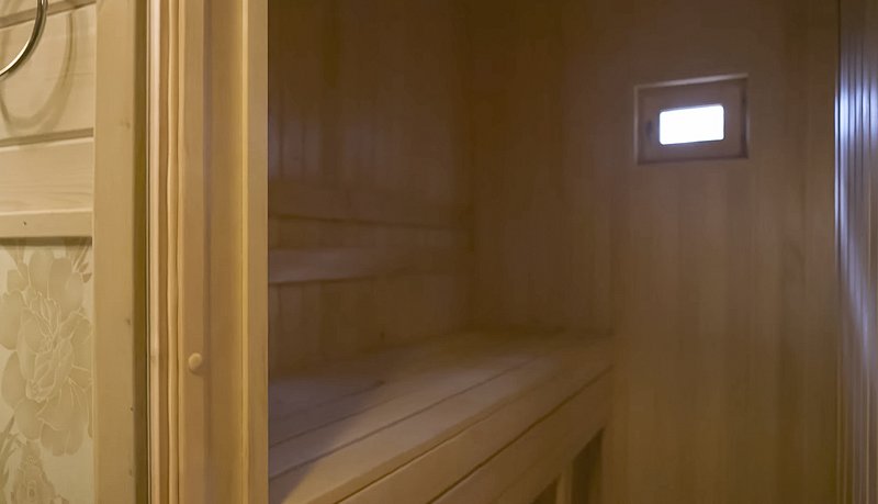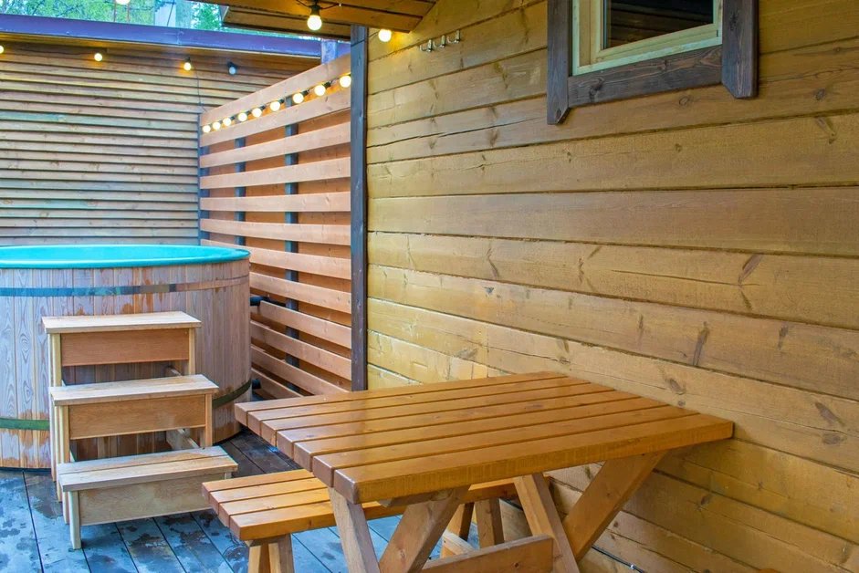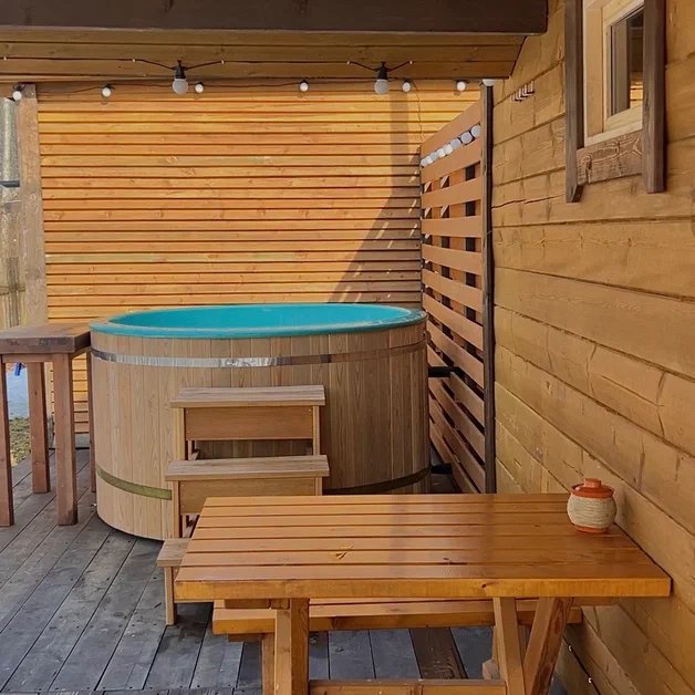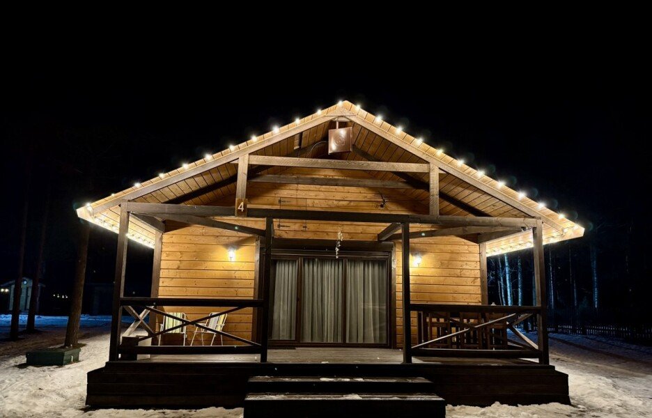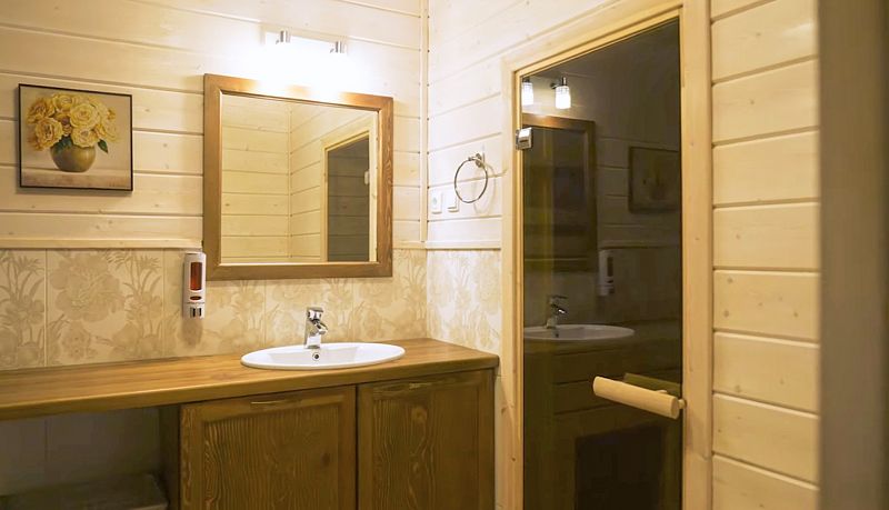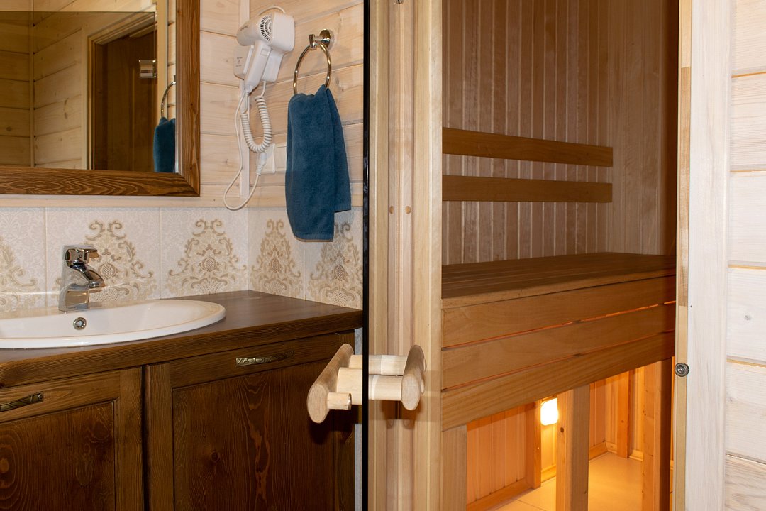 Каждый коттедж оснащен собственной сауной, что позволяет гостям окунуться в атмосферу спокойствия и уединения, не выходя из дома.