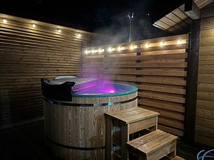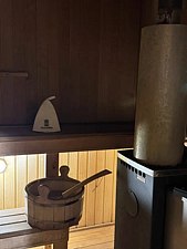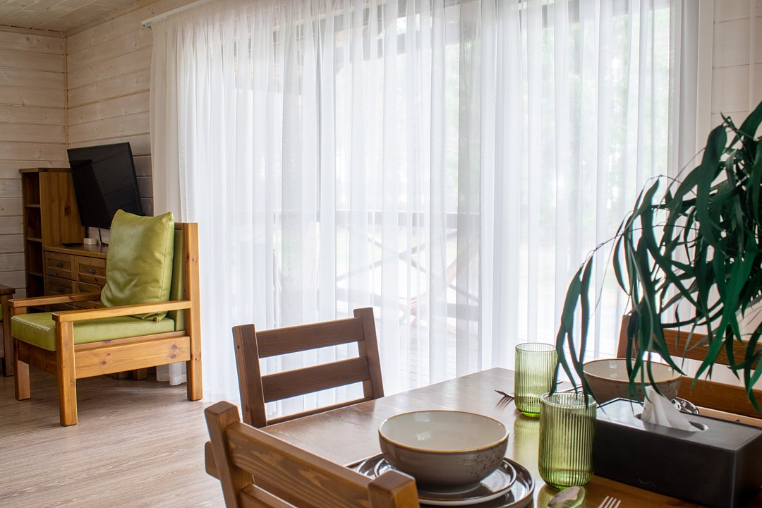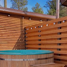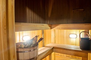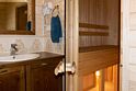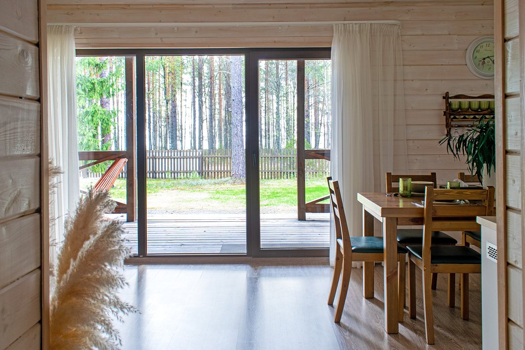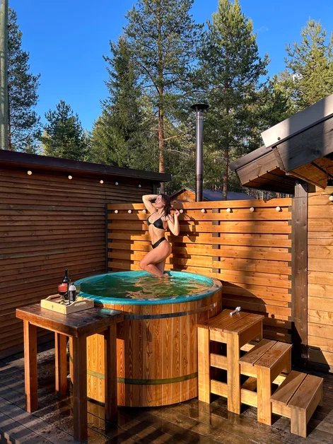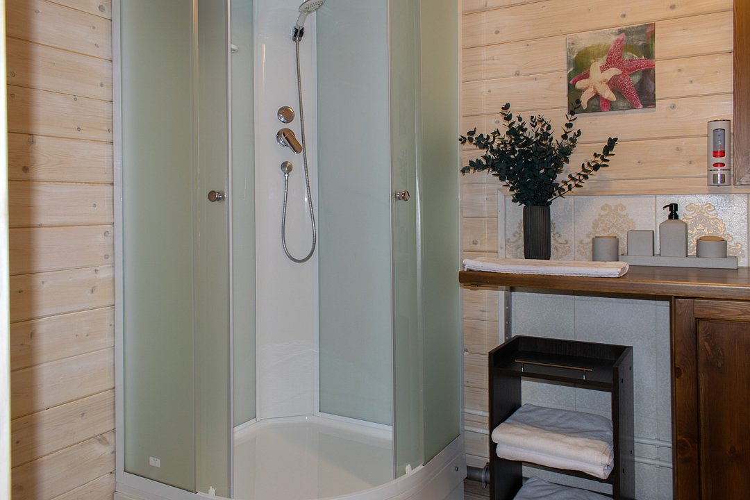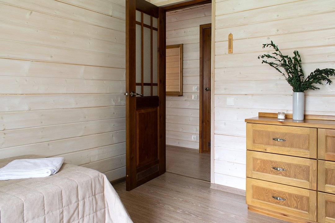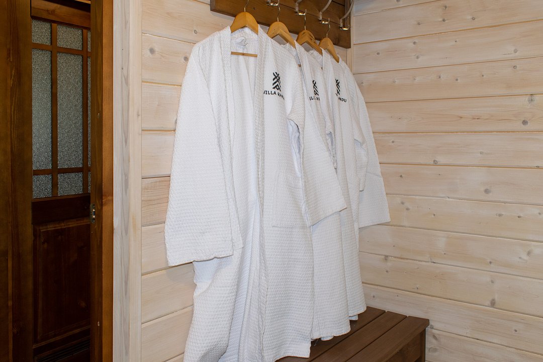 Каждый коттедж оснащен собственной сауной, что позволяет гостям окунуться в атмосферу спокойствия и уединения, не выходя из дома.
