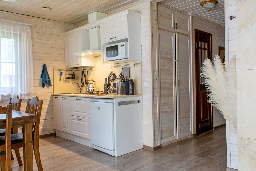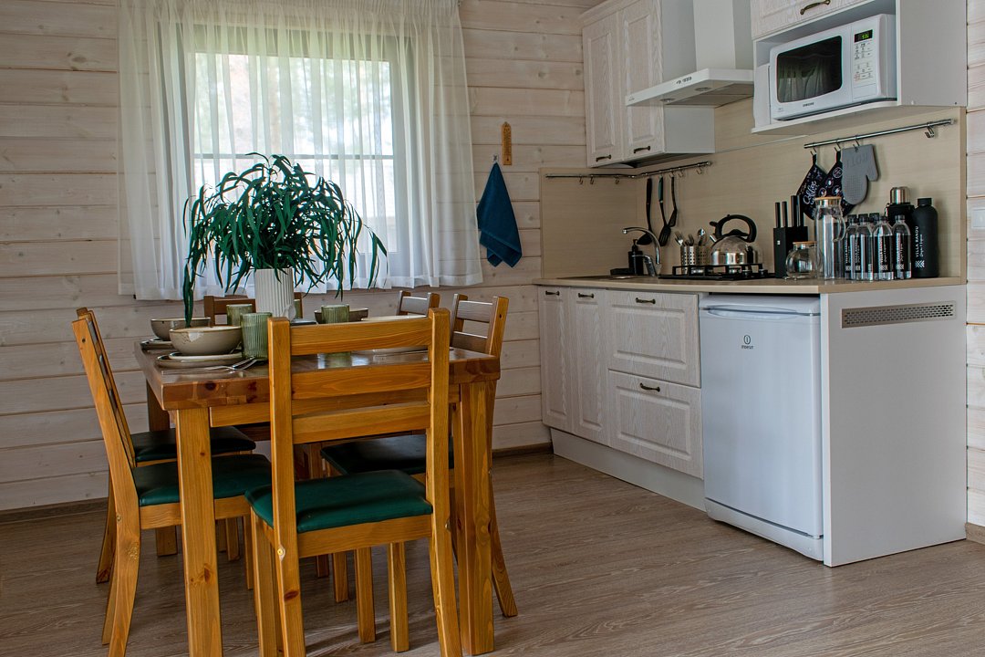 Дом отдыха идеально подойдет для комфортного отдыха компании из 4 человек в любое время года. В нём продумано всё до мелочей, чтобы вы могли расслабиться и насладиться отдыхом.
