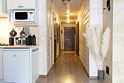В кухне-гостиной находится раздвижной диван, который можно использовать в качестве дополнительного спального места.