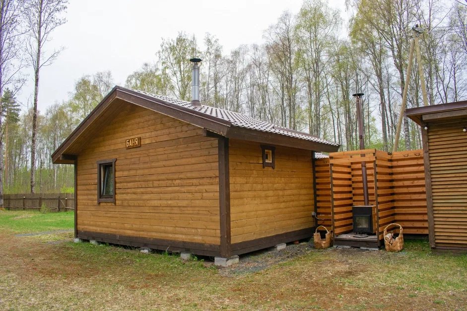 На территории базы отдыха имеется специальное здание, предназначенное для гостей, которые хотят насладиться банными процедурами. Это уютное пространство включает в себя парную, где можно окунуться в атмосферу расслабления, а также отдельную комнату отдыха, идеально подходящую для отдыха после процедур.