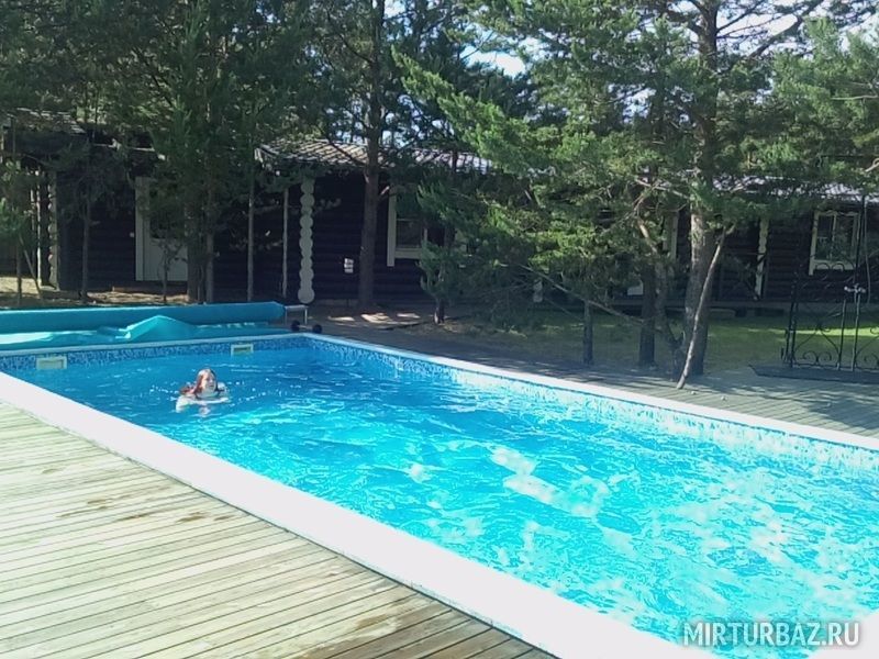 Открытый бассейн с тёплой водой, массажными струями и противотоком находится в нескольких шагах от бани и открыт для купания круглый год.