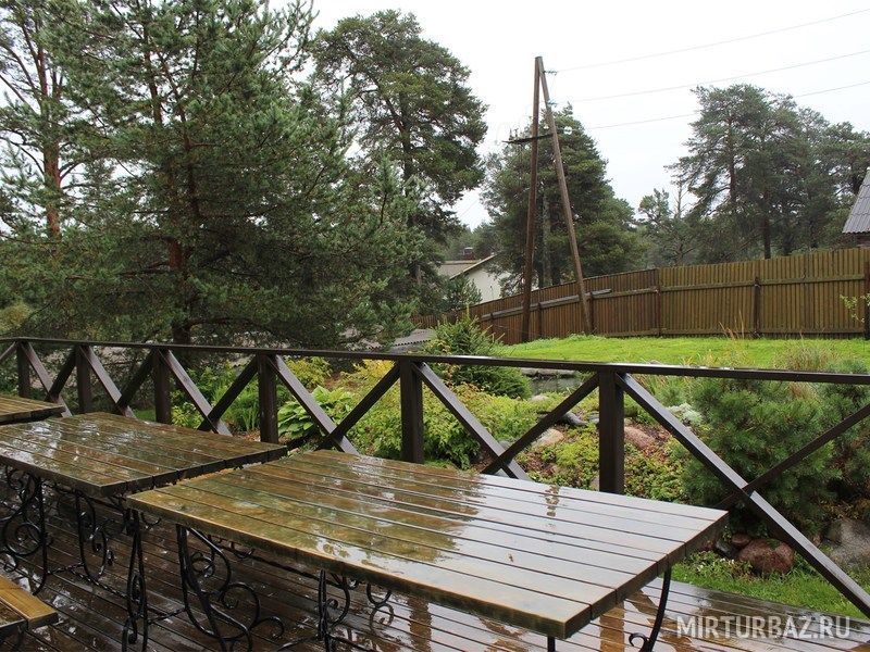 В уютном зале кафе — два камина, выход на террасу, с которой открывается прекрасный вид на реку и Ладожское озеро. Завтрак включён в стоимость номера.